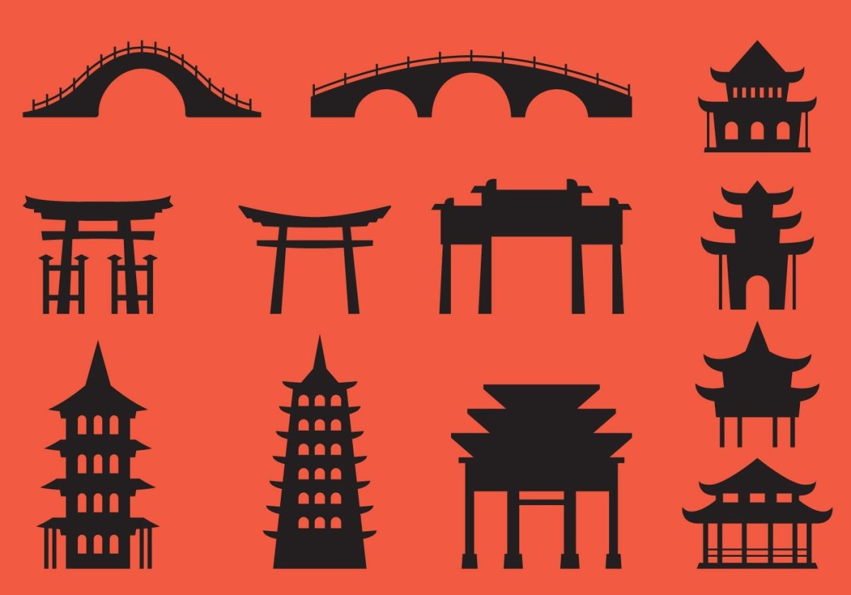 Японская архитектура вектор силует