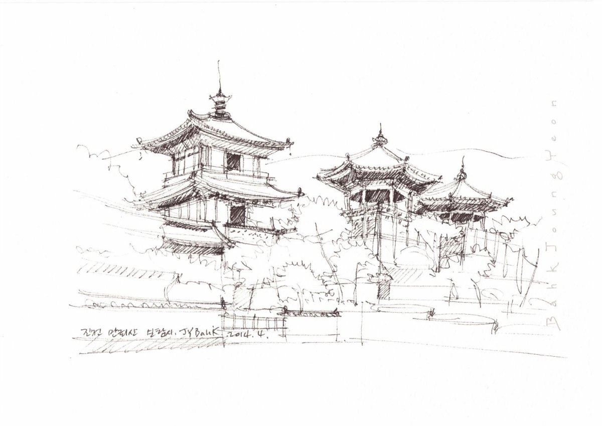 Буддийский храм карандашом
