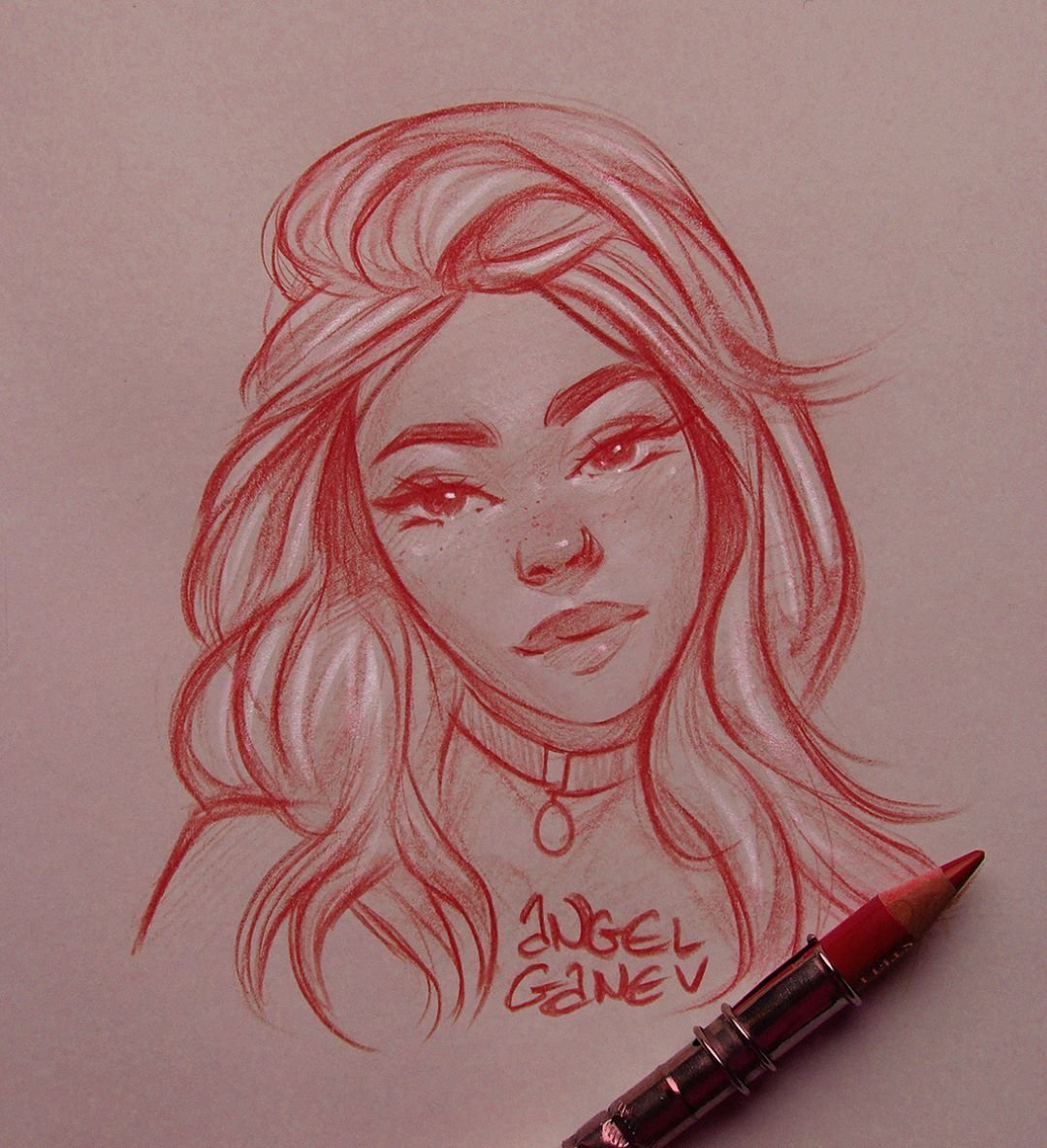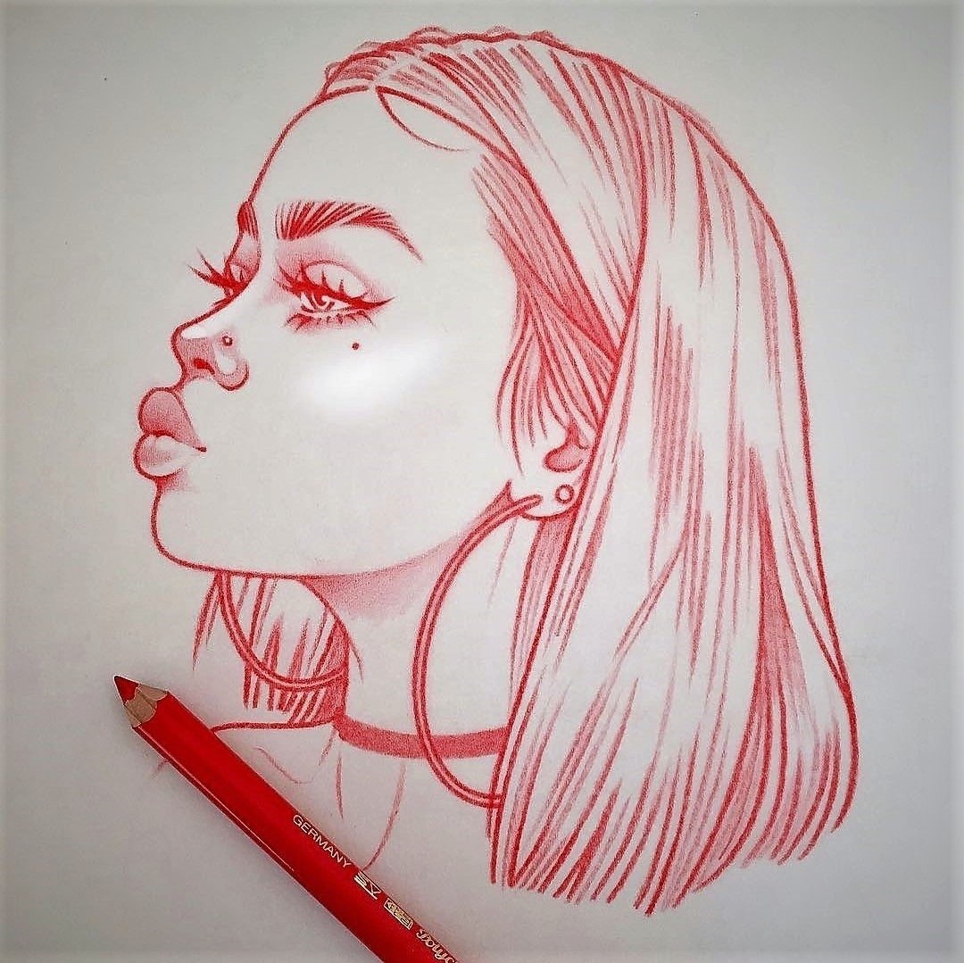 Рисунки для срисовки красным карандашом