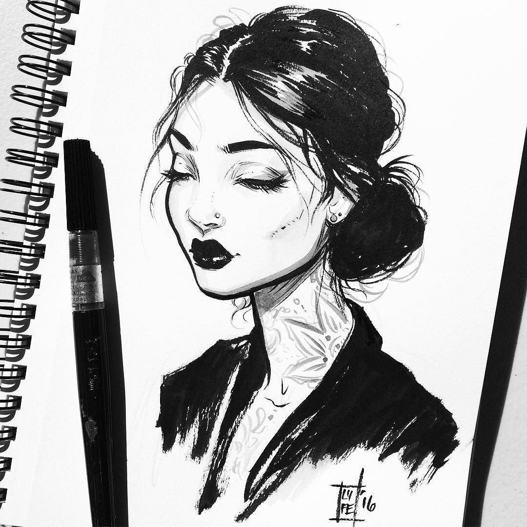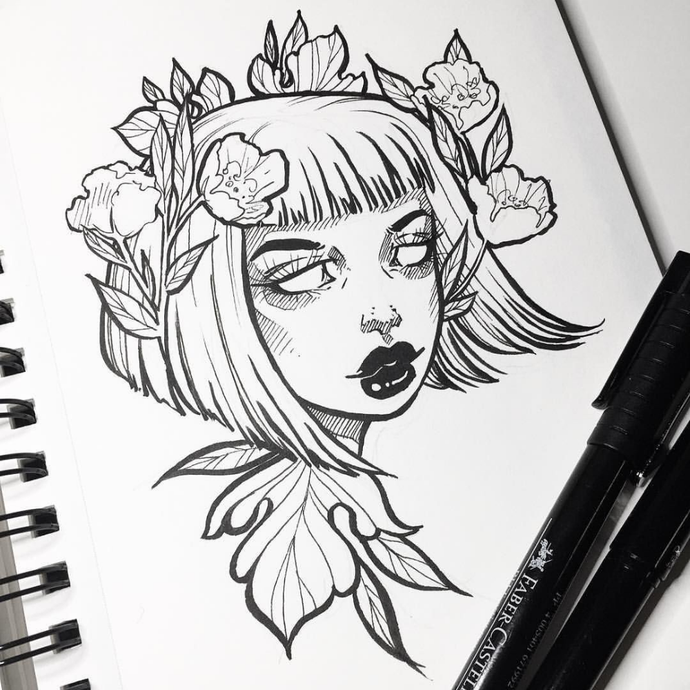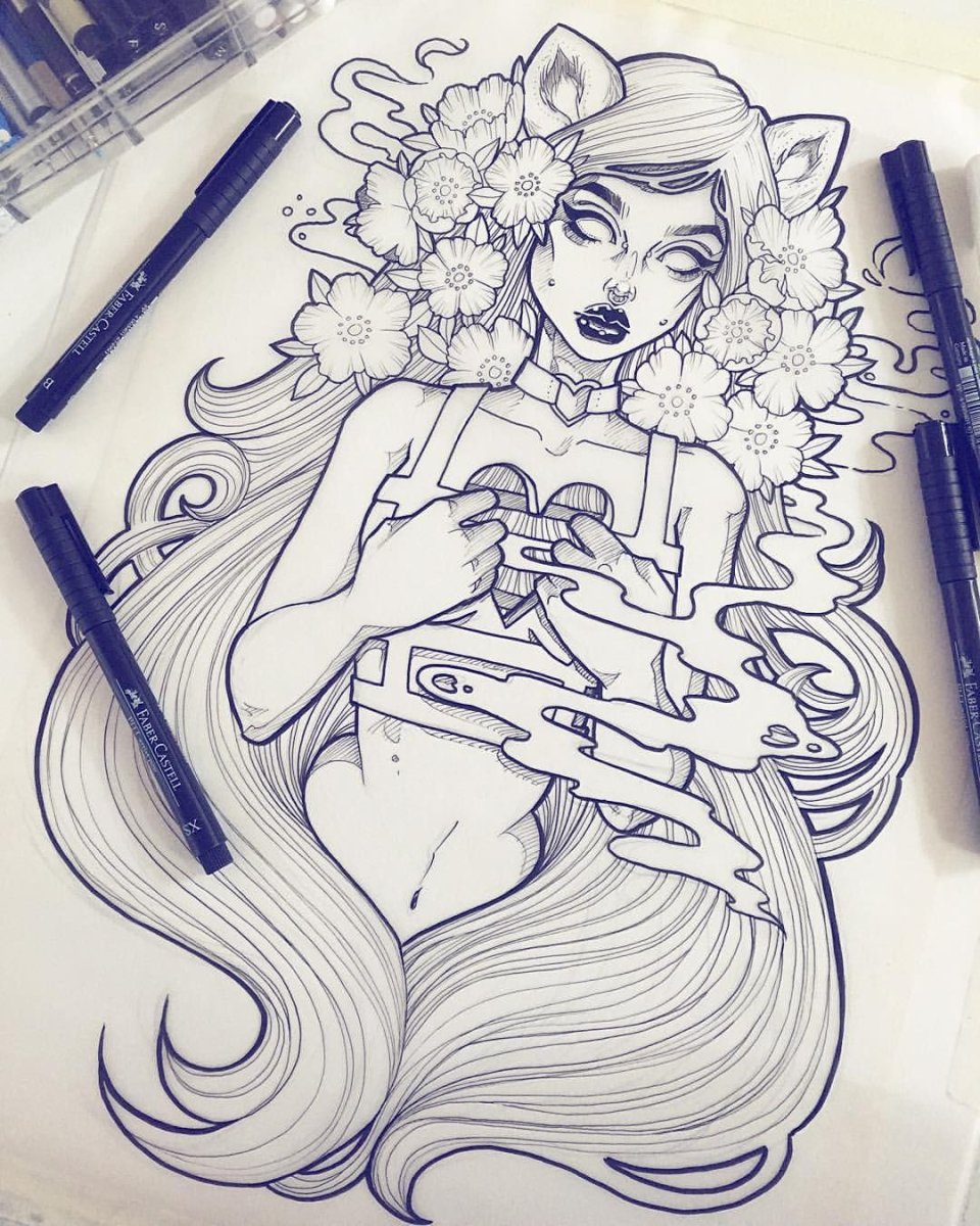 Рисунки чёрной ручкой девушки