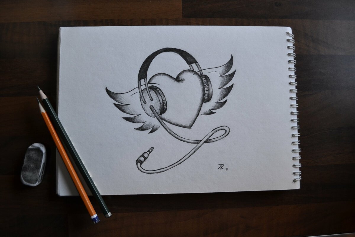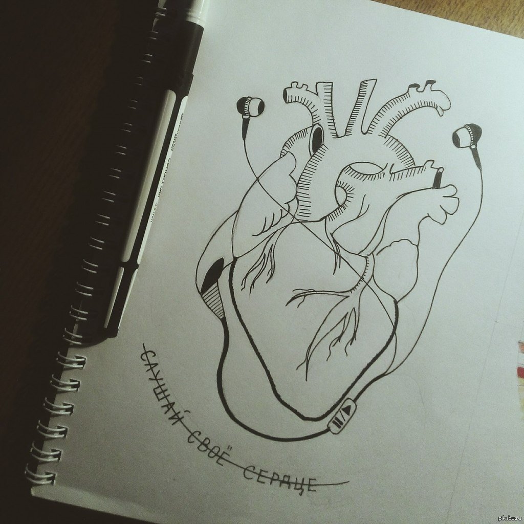 Рисунок для скетчбука легкие сердце