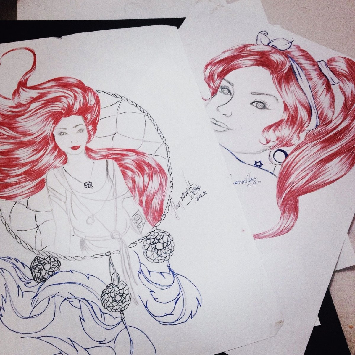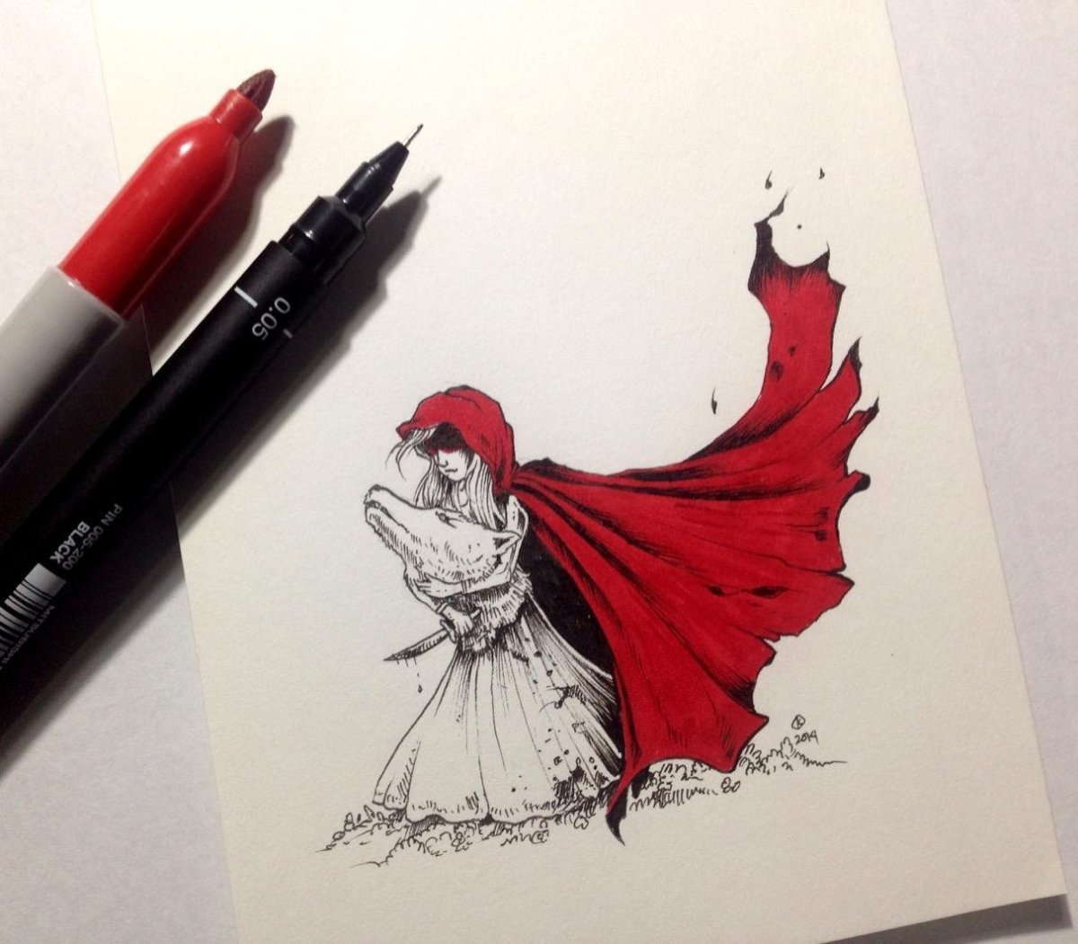 Рисунки красной ручкой