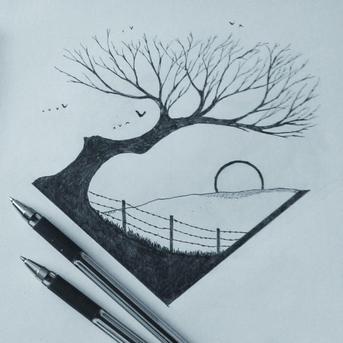 Рисунки гелевой ручкой пейзажи