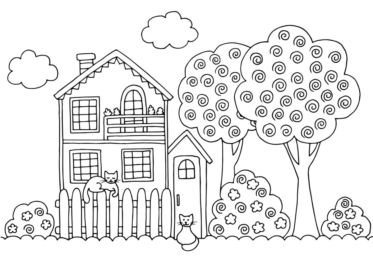 Раскраска домик с садом