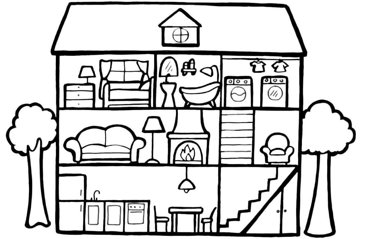 Раскраска домик с комнатами