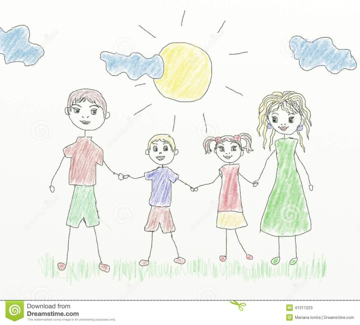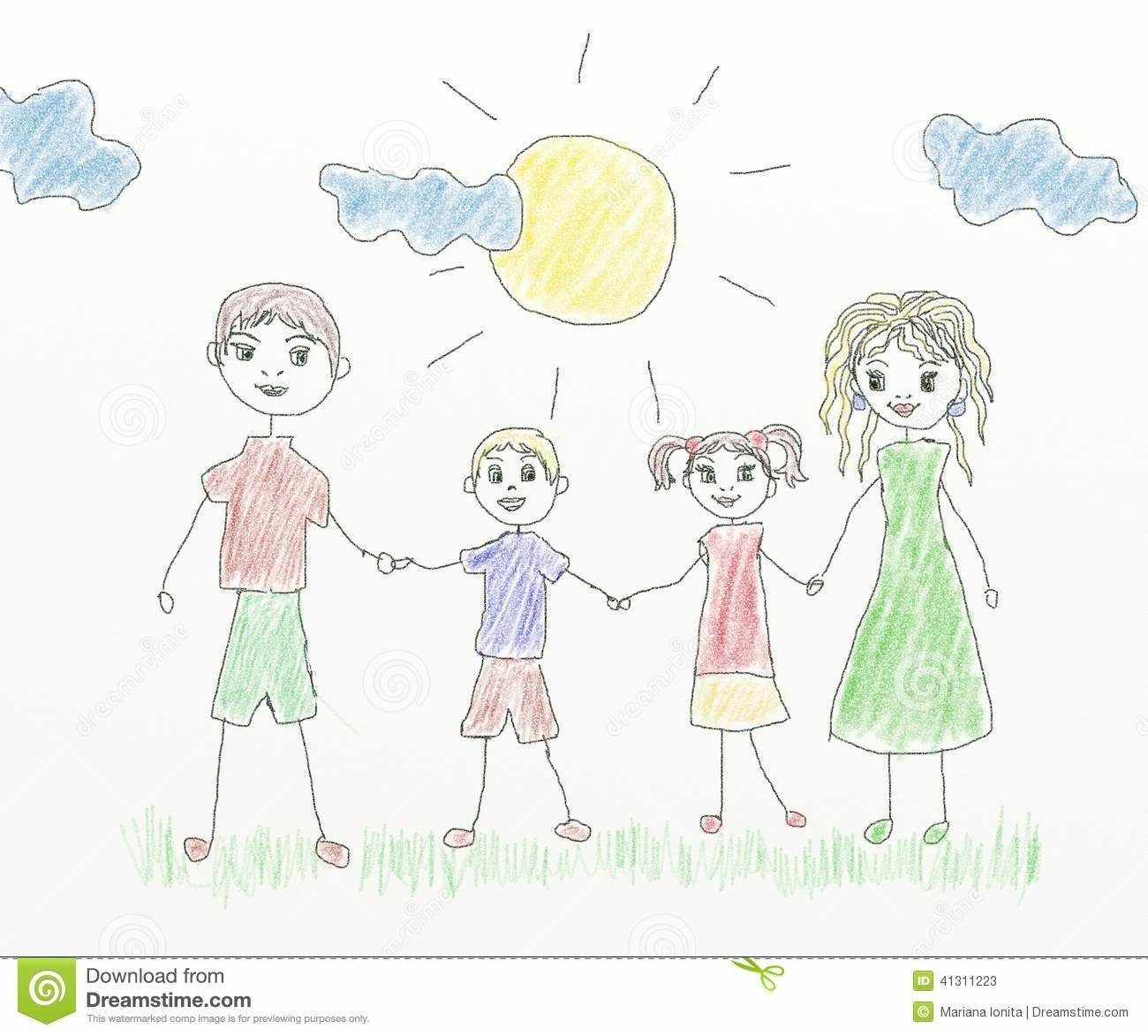 Рисунок семьи детский карандашом
