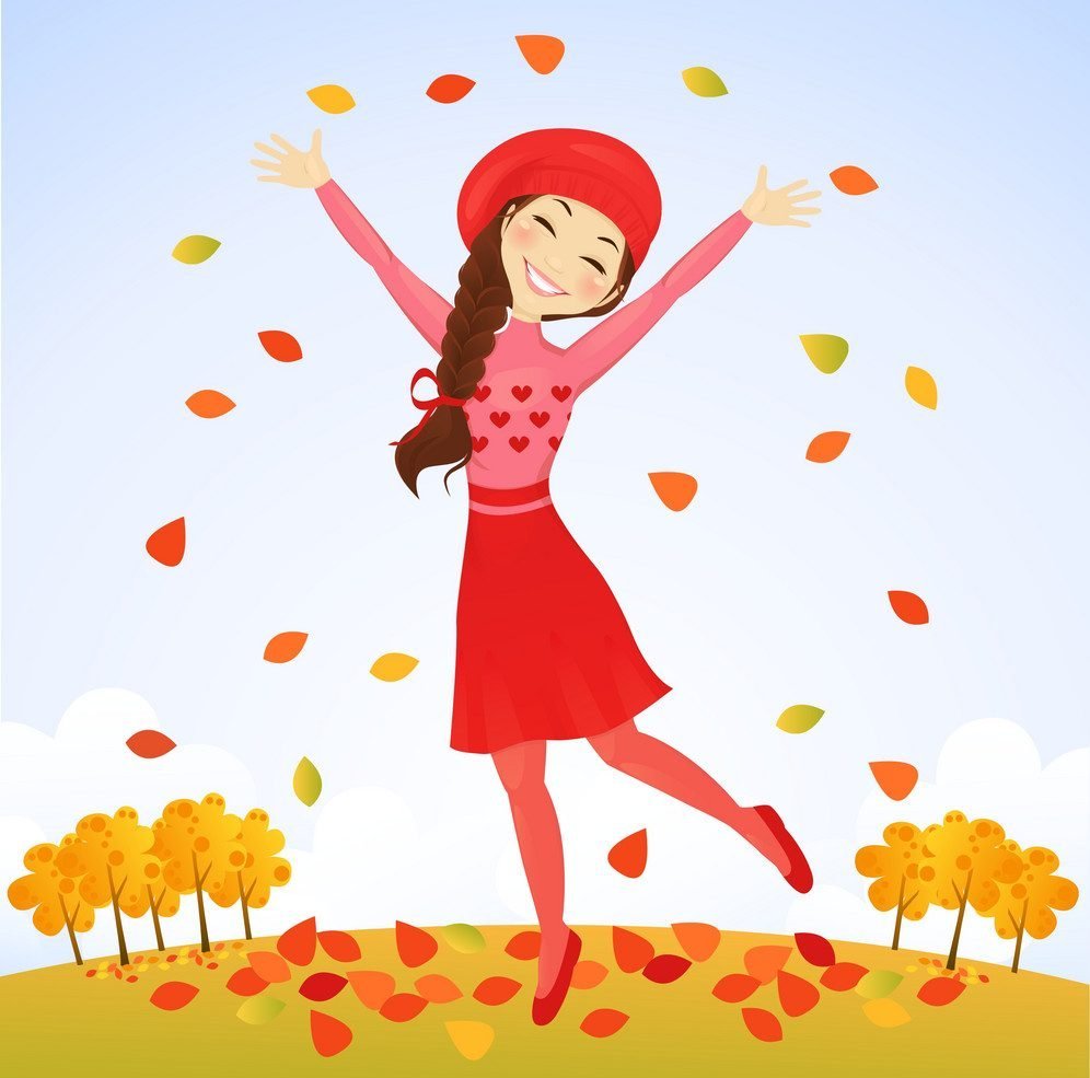 Девочка осенью мультяшное