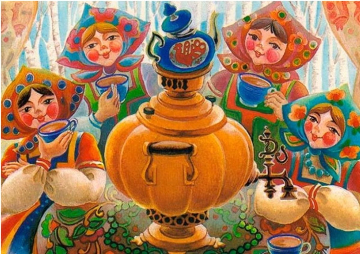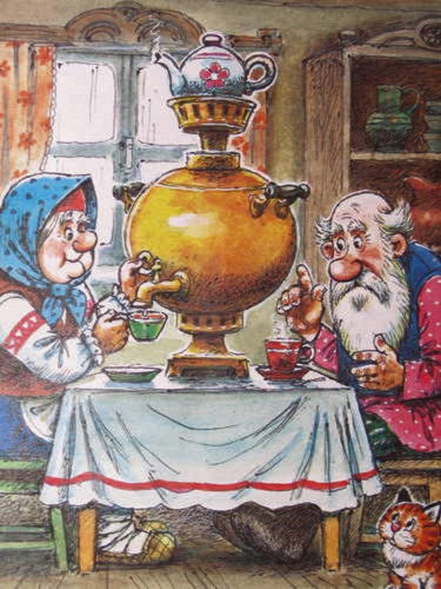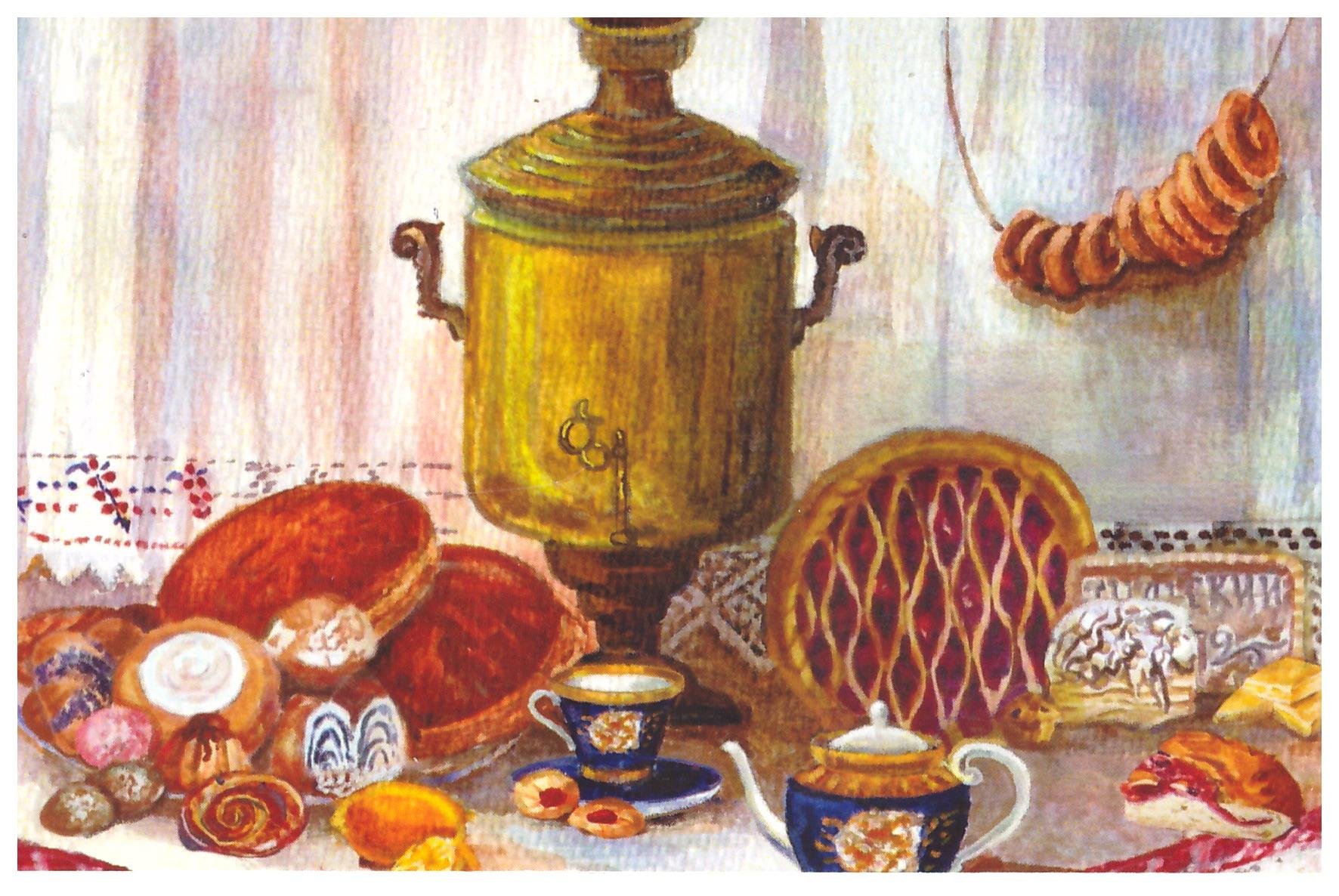 Чаепитие у самовара рисунок