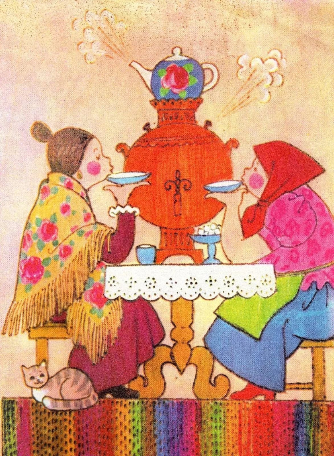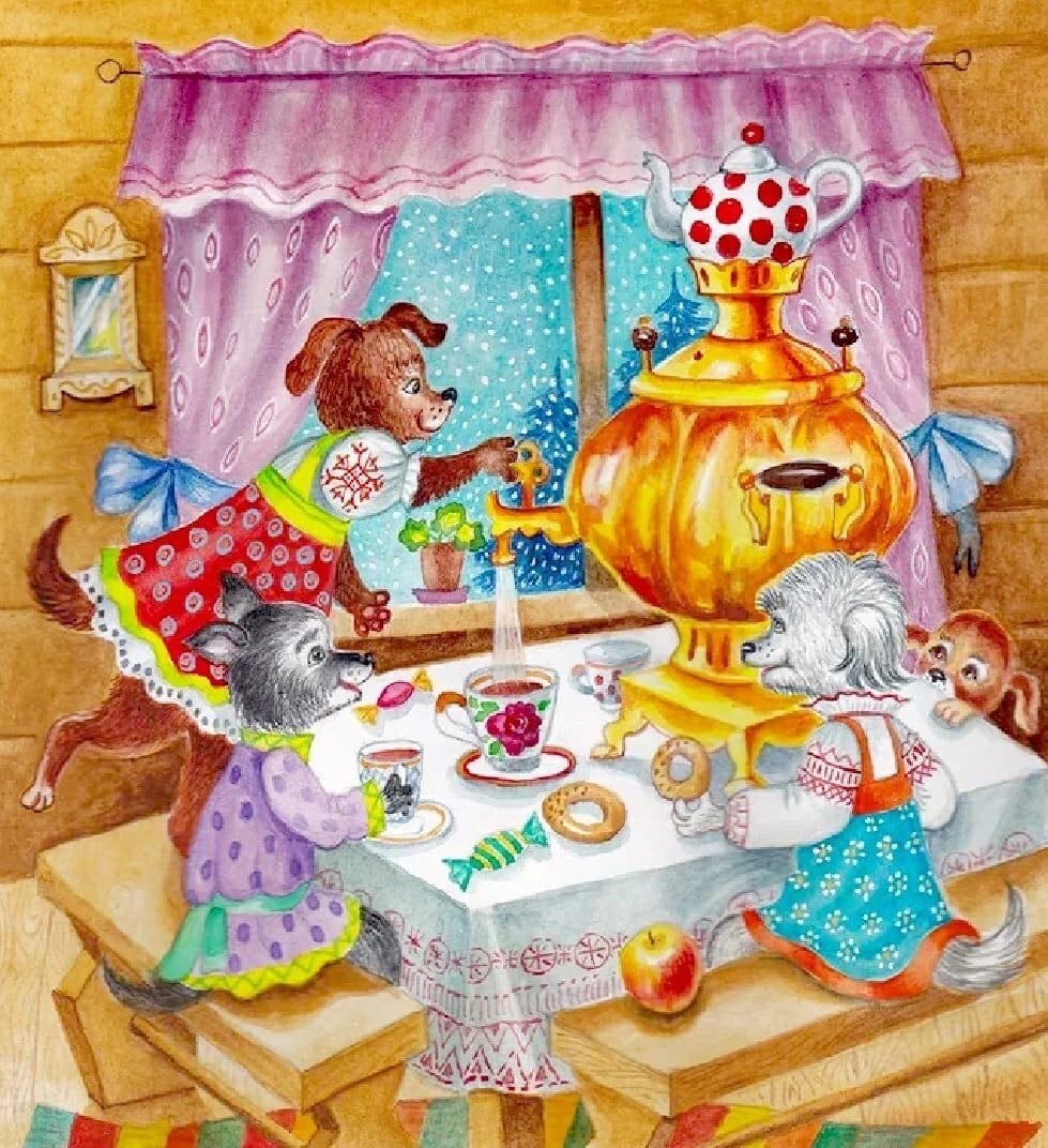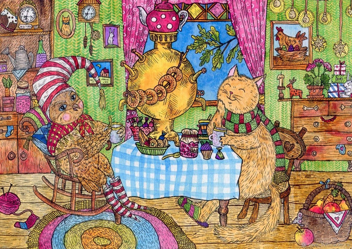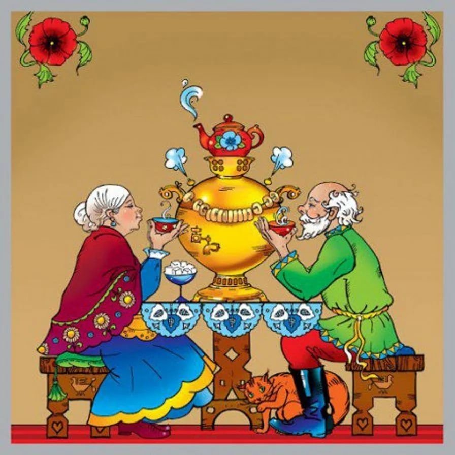 Чаепитие у самовара рисунок