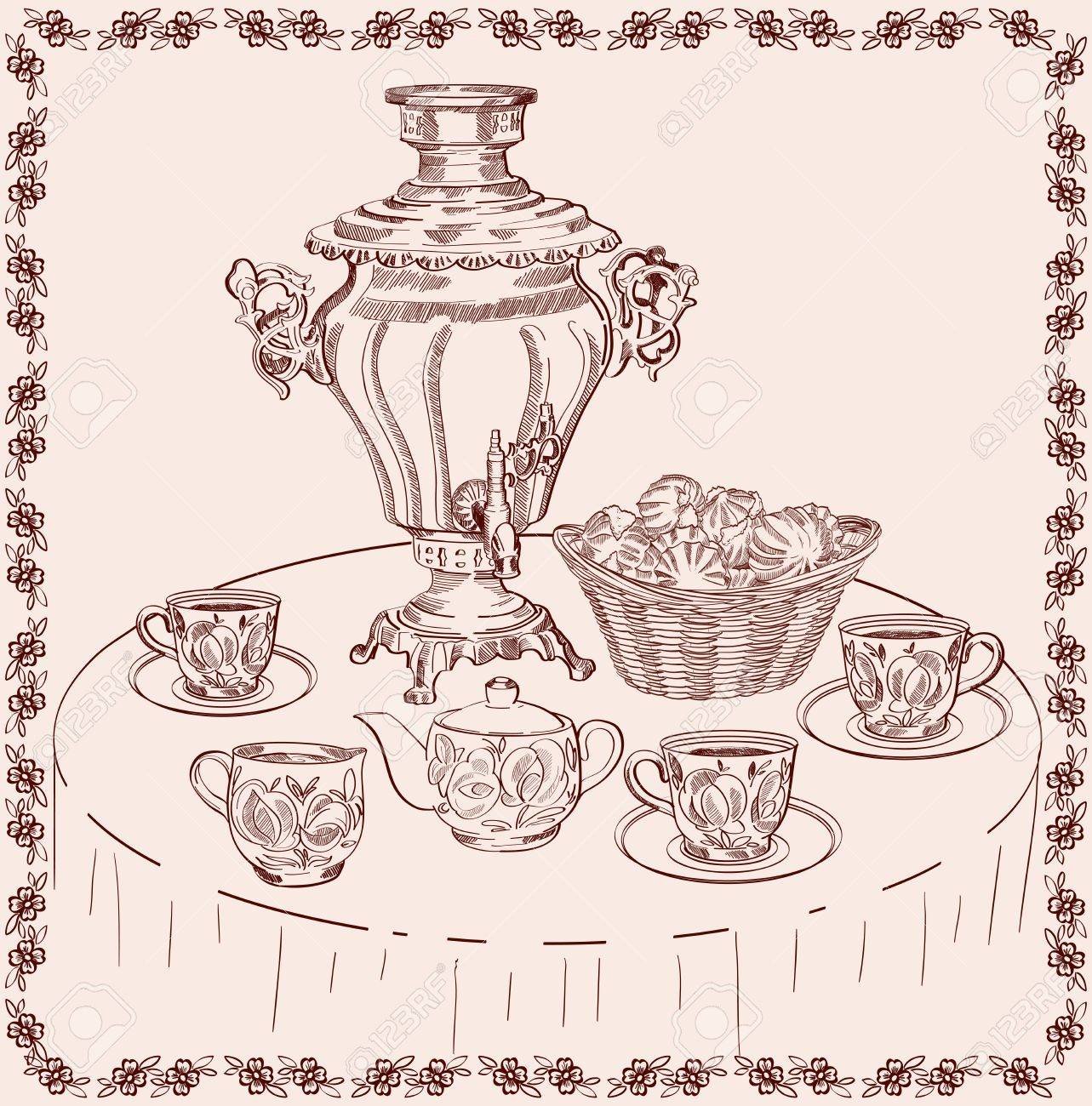 Чаепитие с самоваром иллюстрации