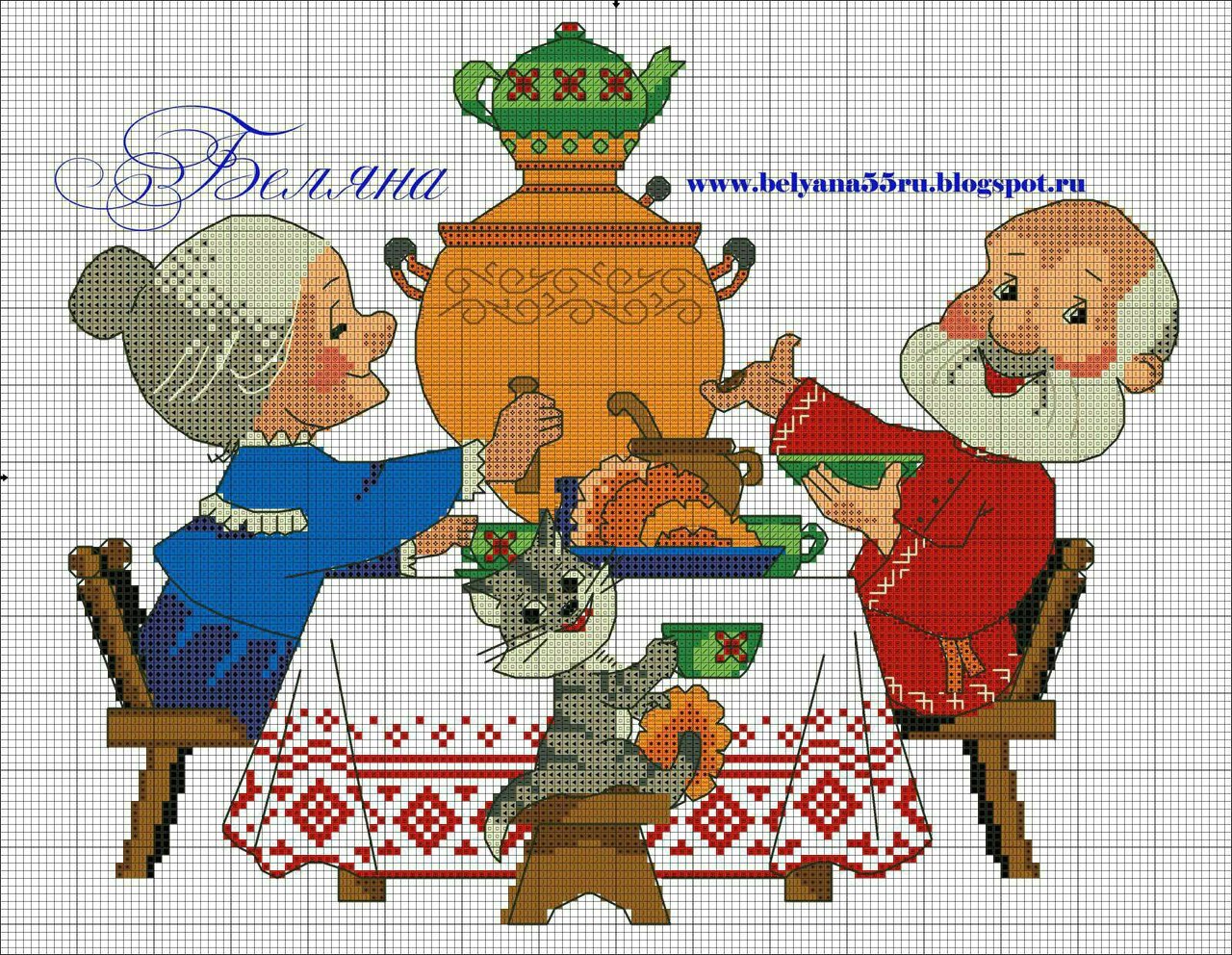 Вышивка чаепитие у самовара