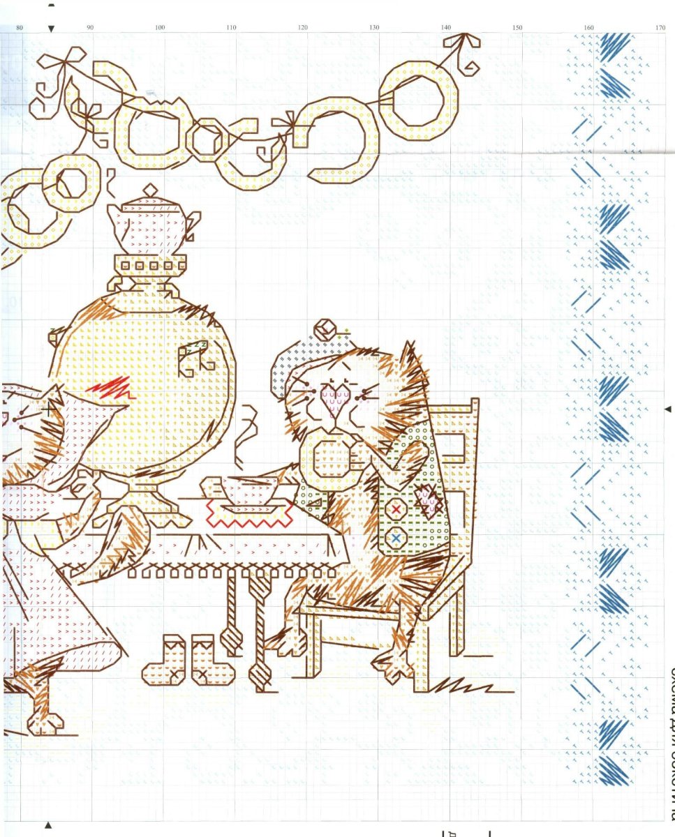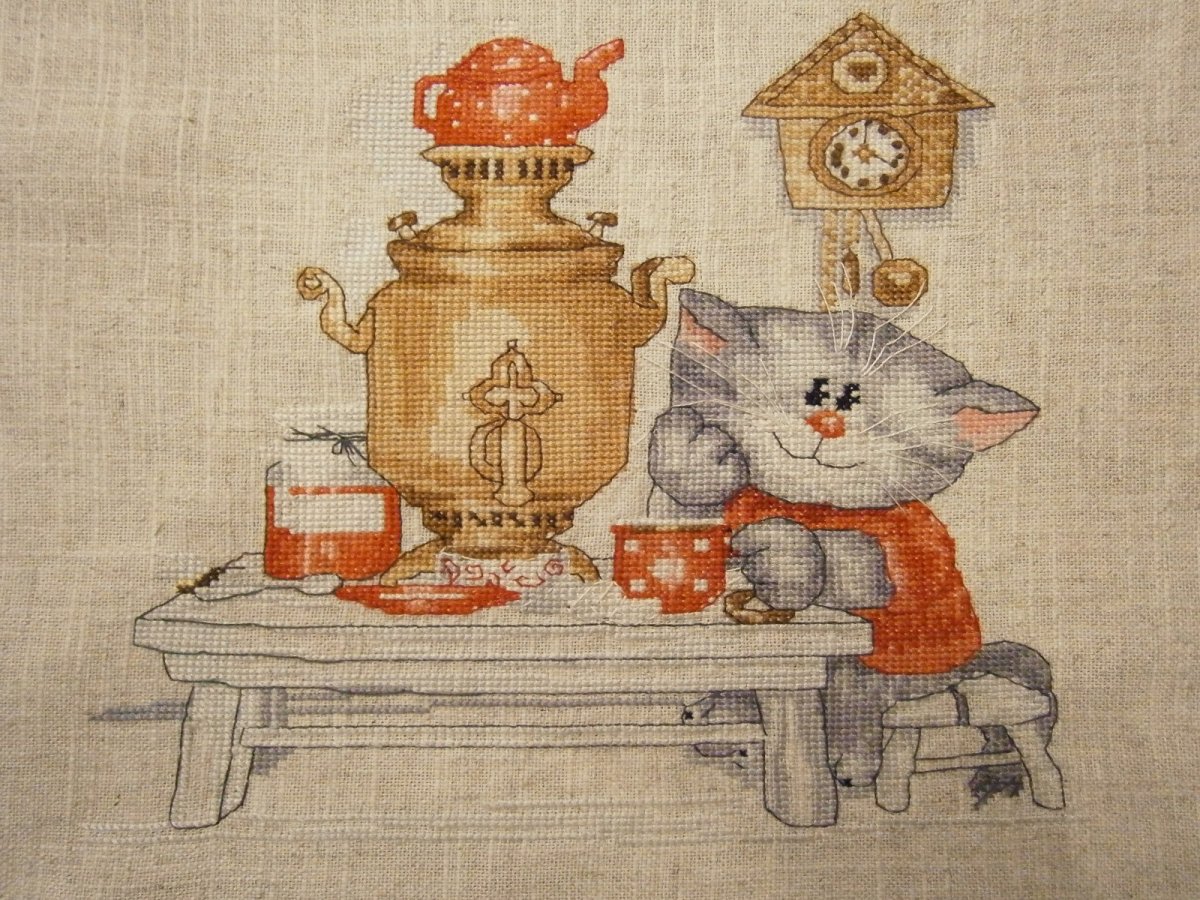 Вышивка кот с самоваром