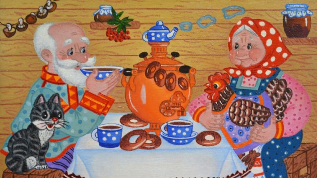 Бабушка с дедушкой у самовара