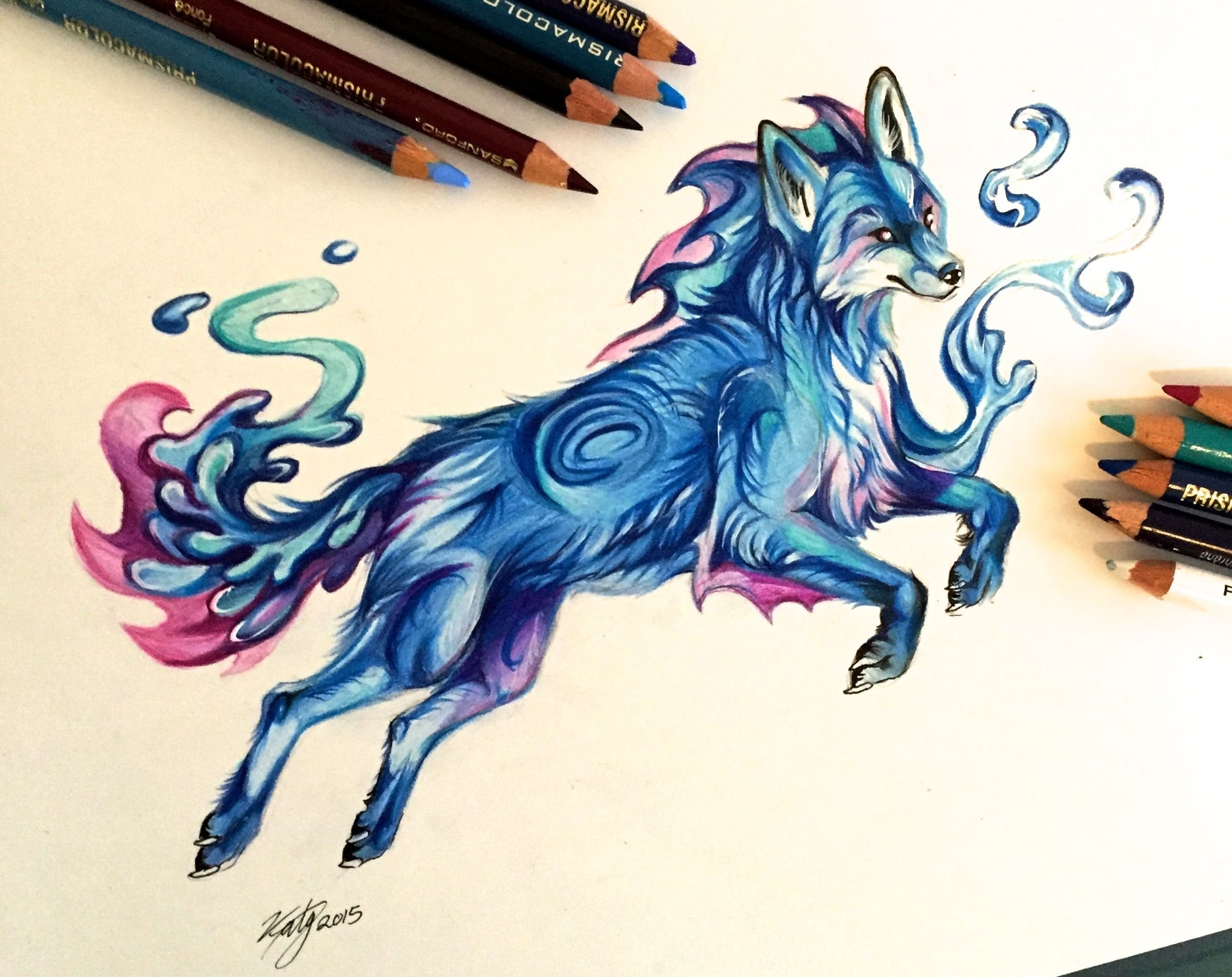 Волк рисунок цветными карандашами