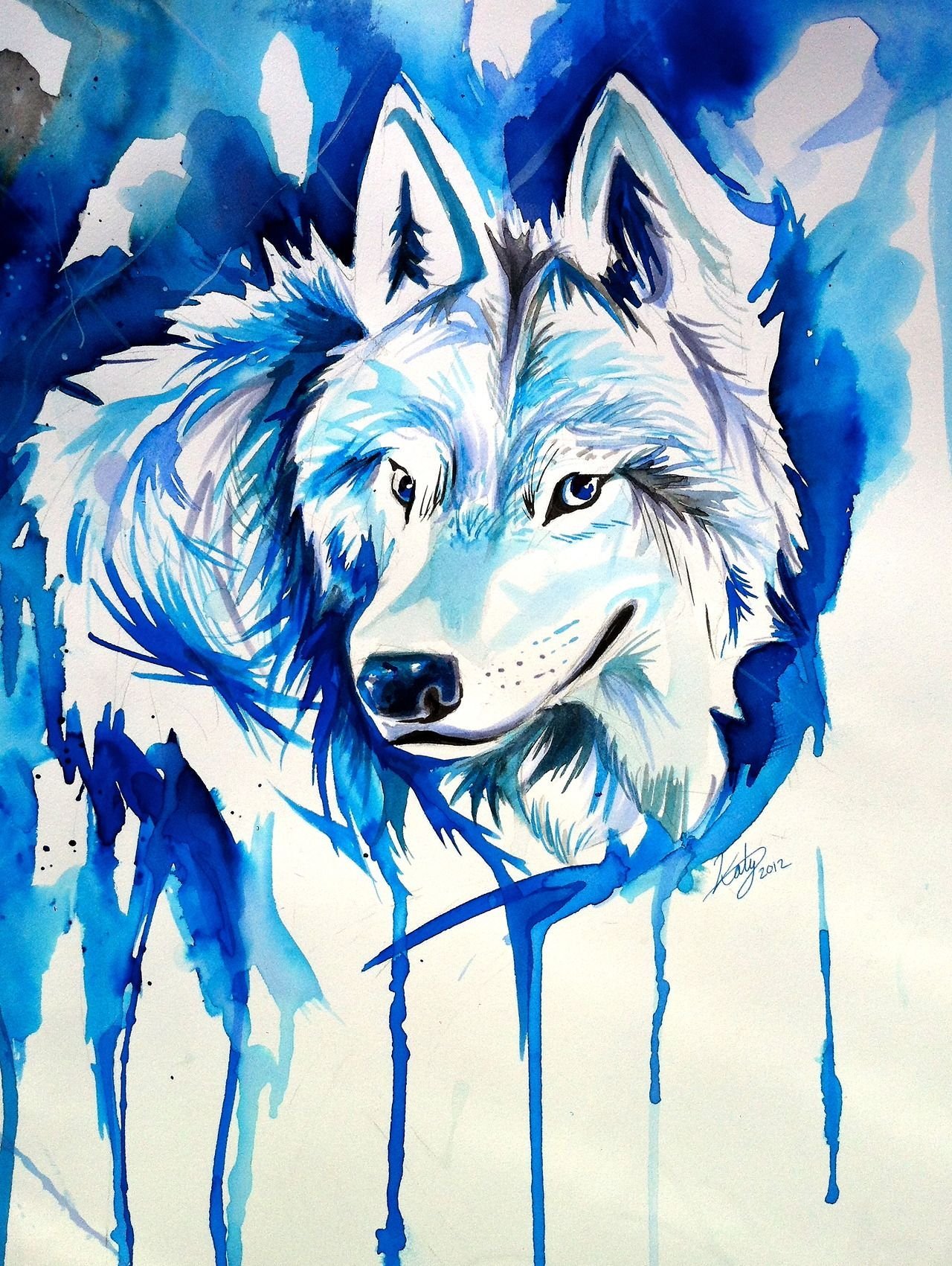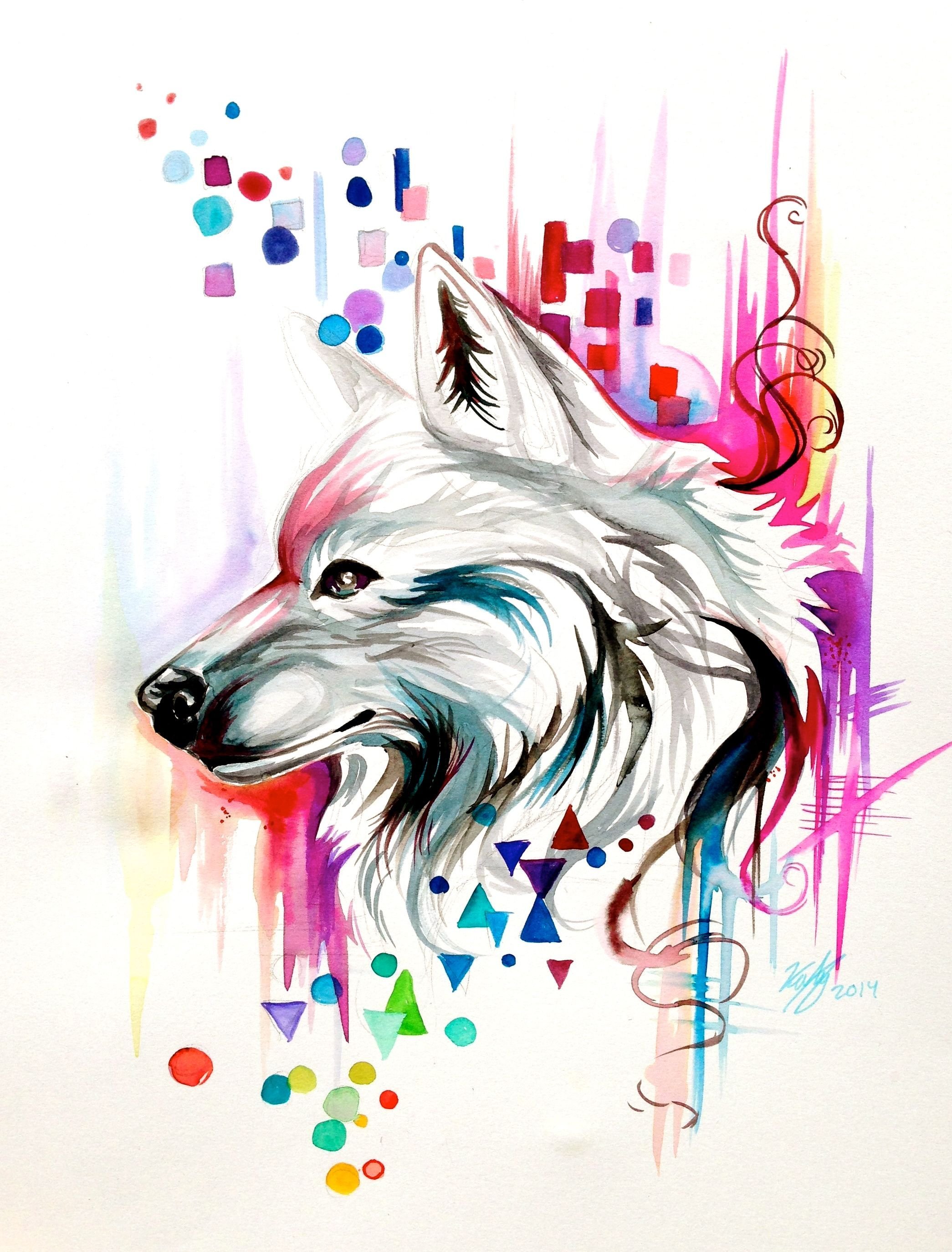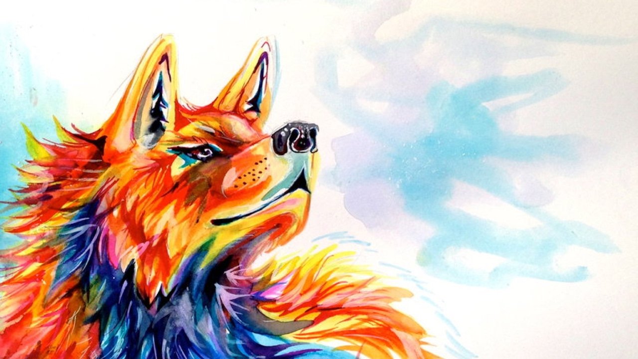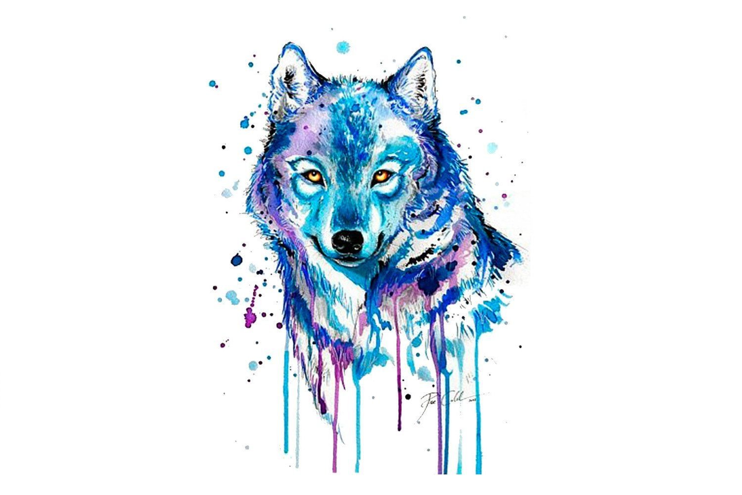 Волк красками