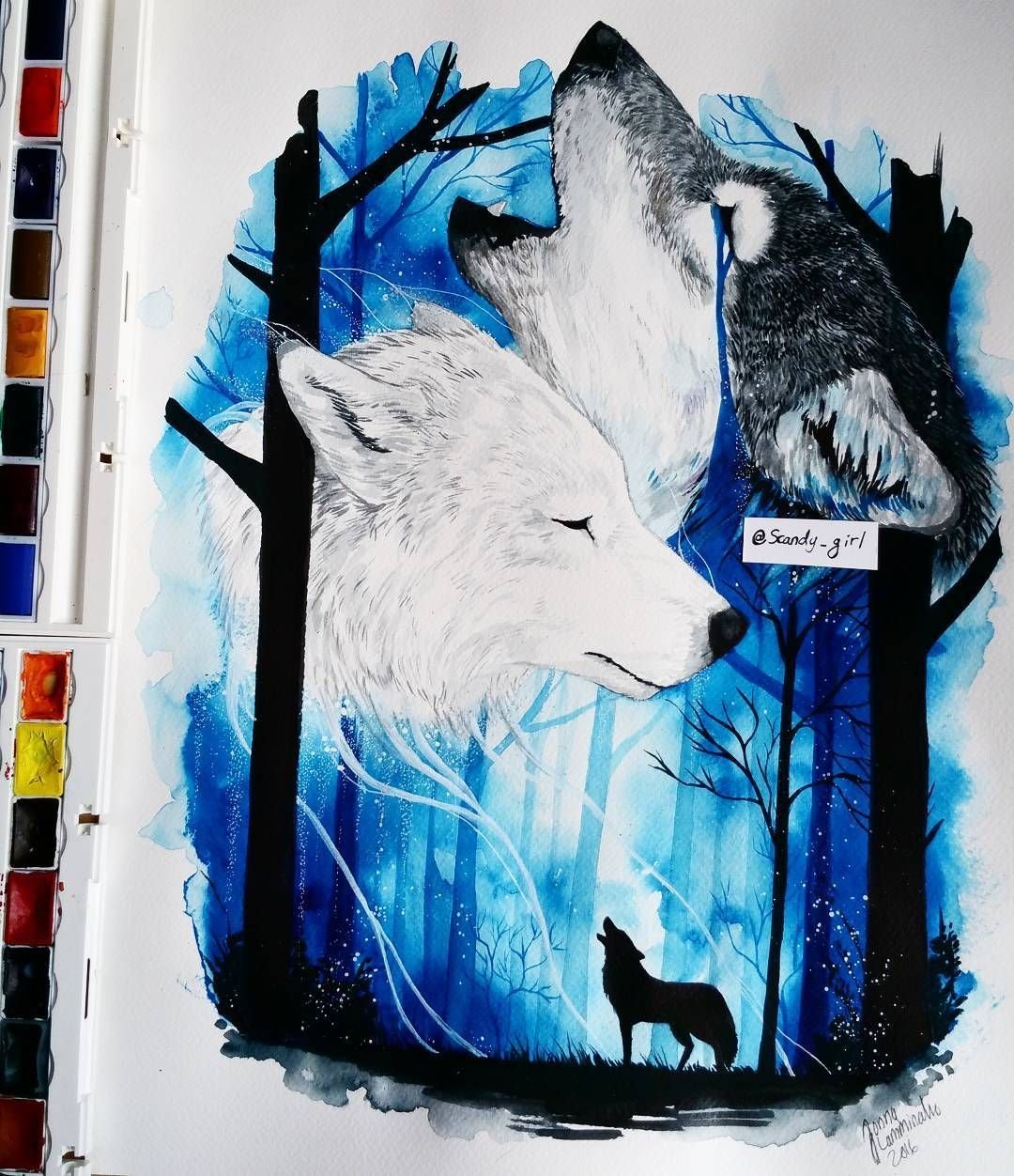 Волк гуашью