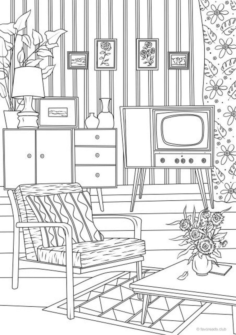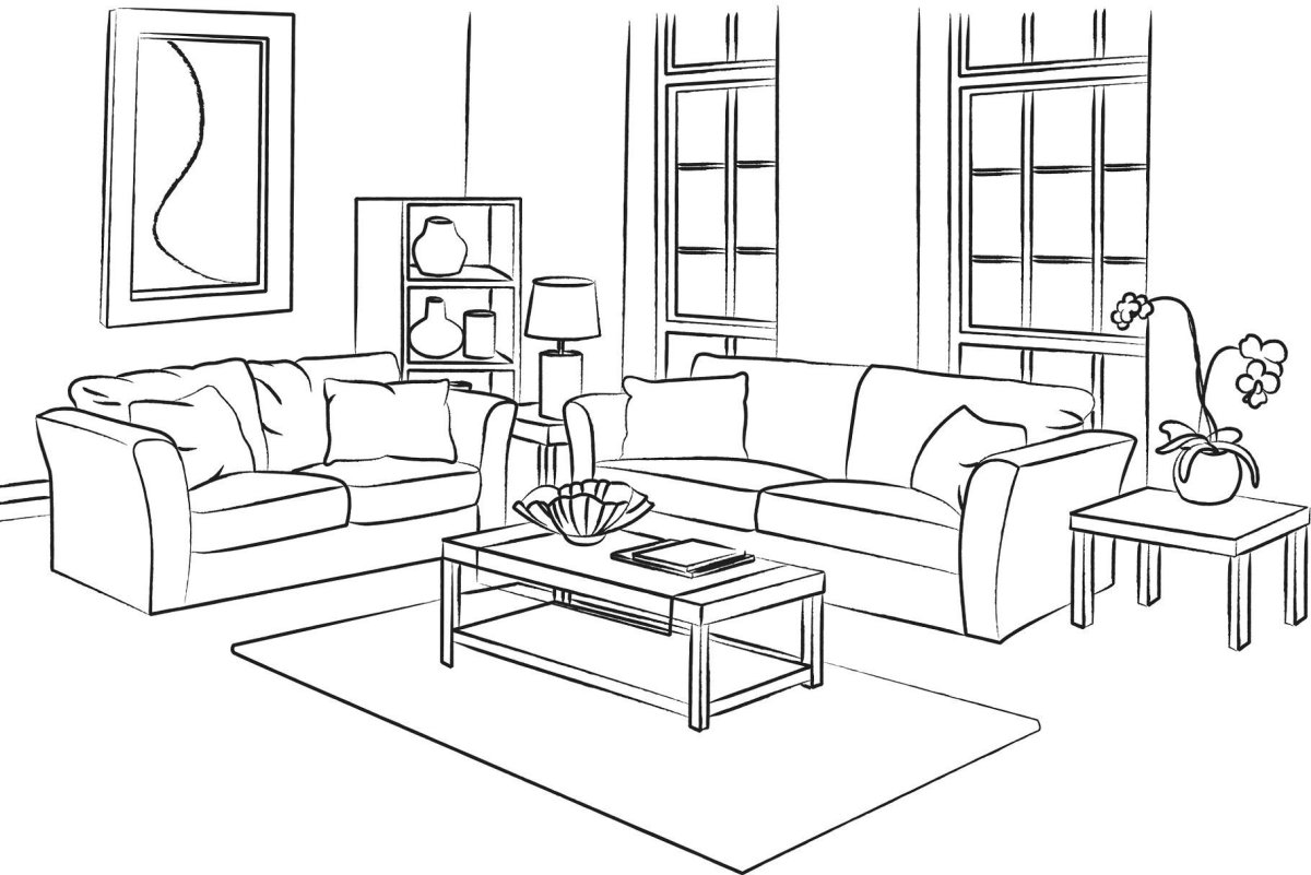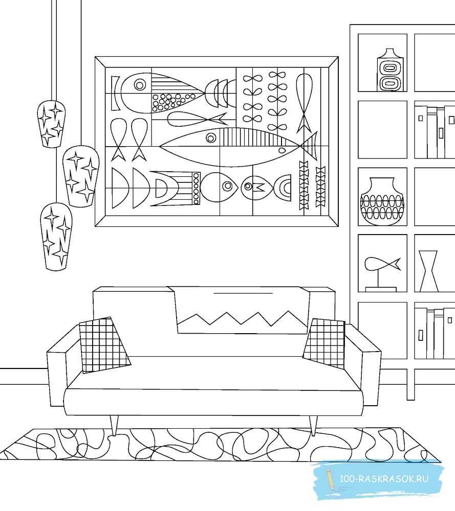 Раскраска интерьер комнаты