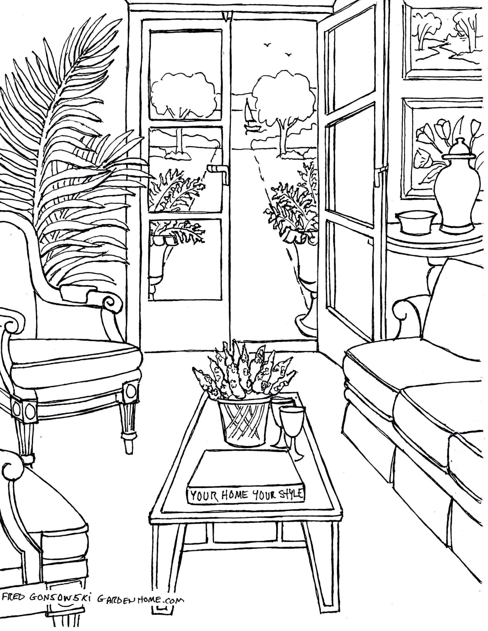 Раскраска антистресс интерьер