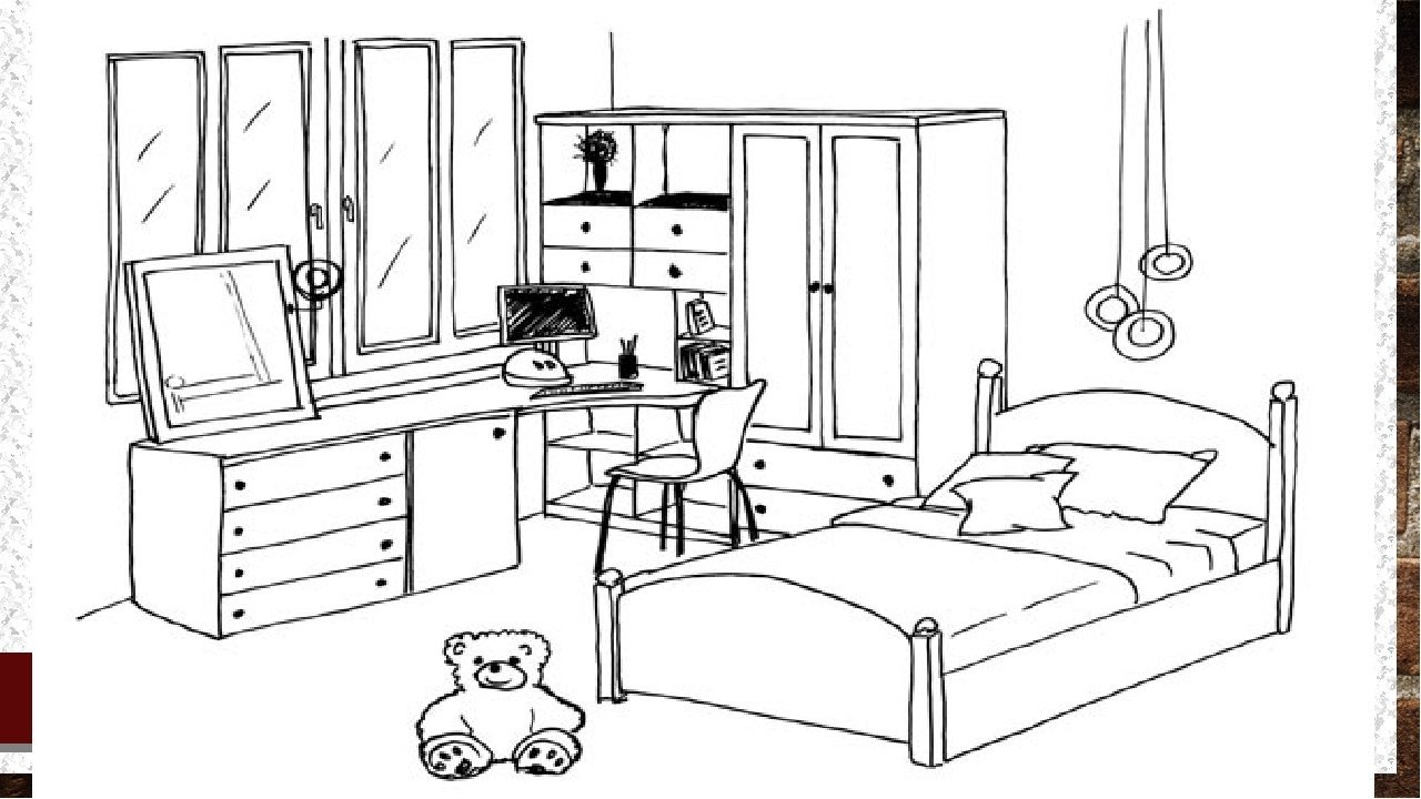 Рисунок комнаты с мебелью для детей
