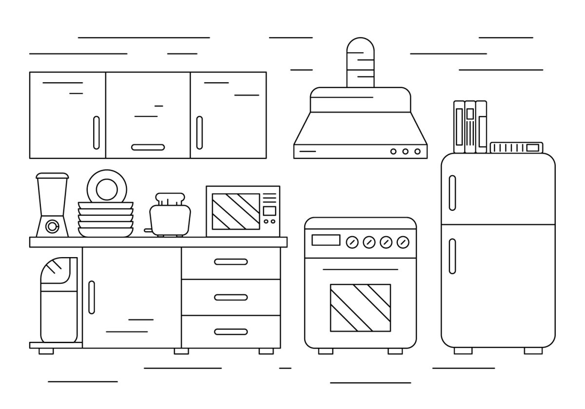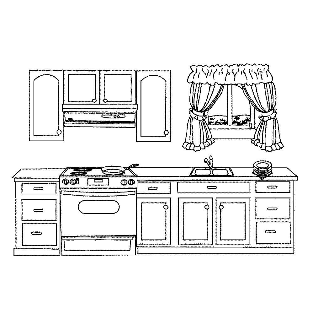 Раскраска кухня с мебелью