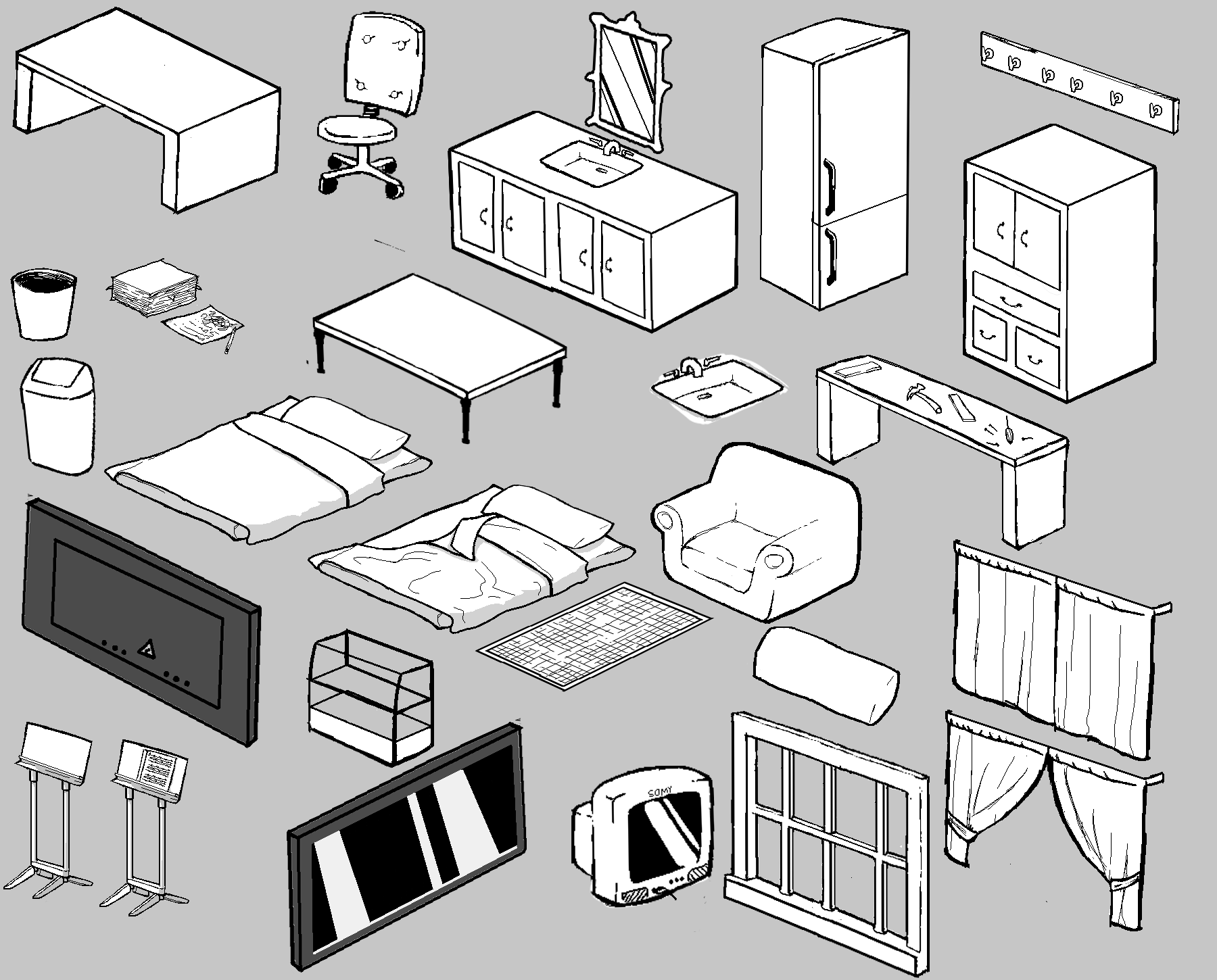 Мебель черно белая мультяшная