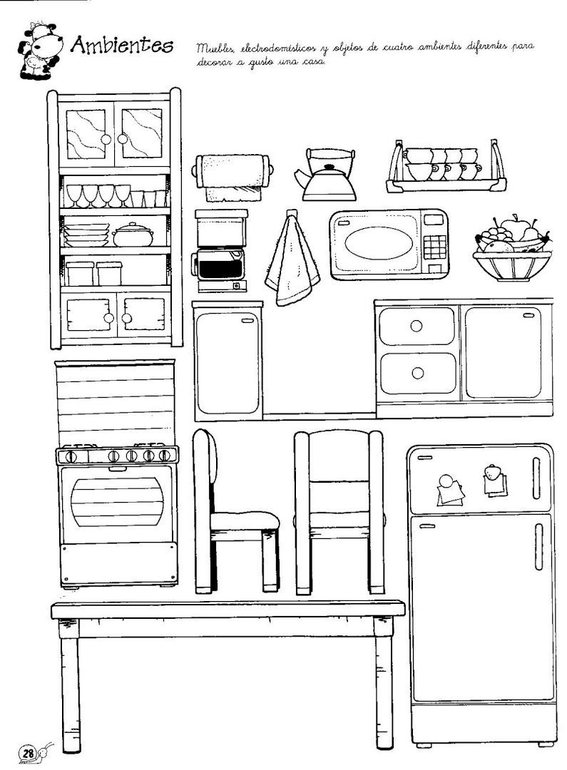 Мебель для кукол раскраска кухня