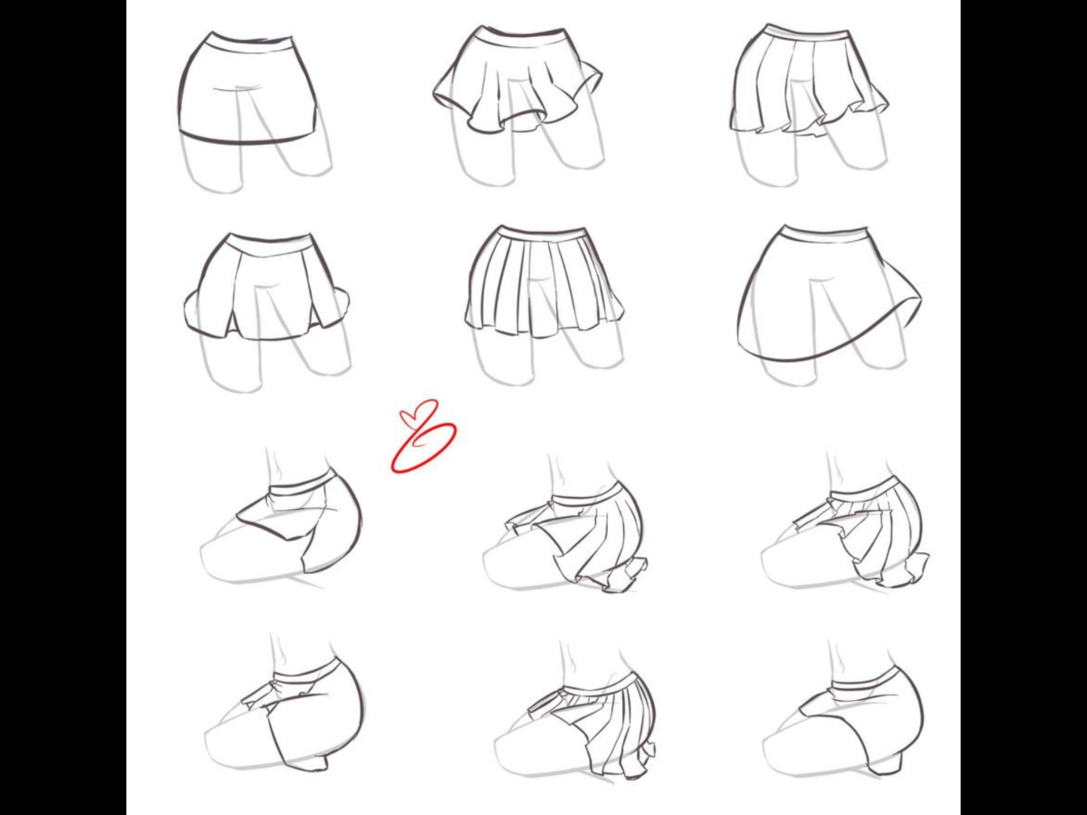Как нарисовать сидящую девушку в юбке