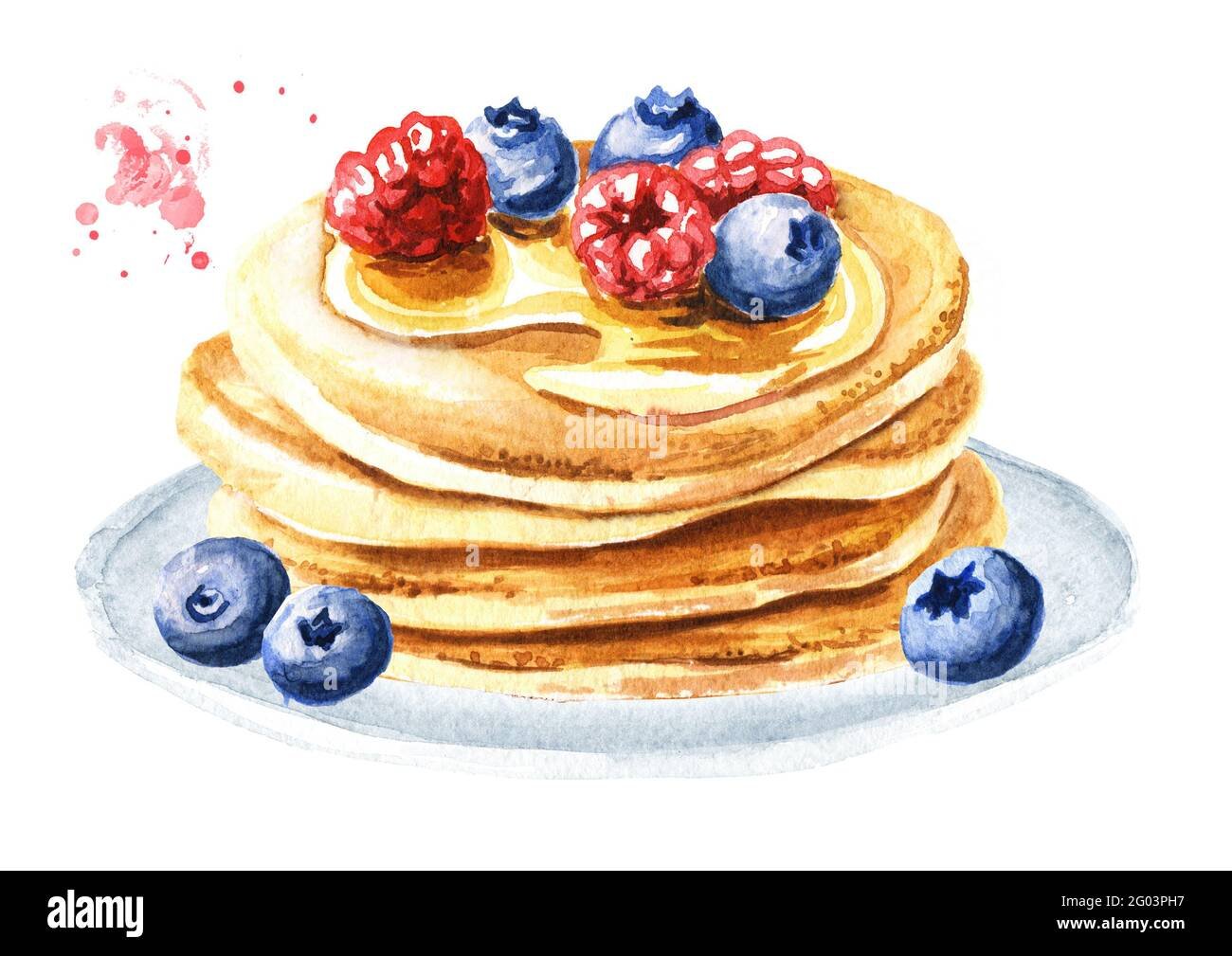 Панкейки с ягодами акварель