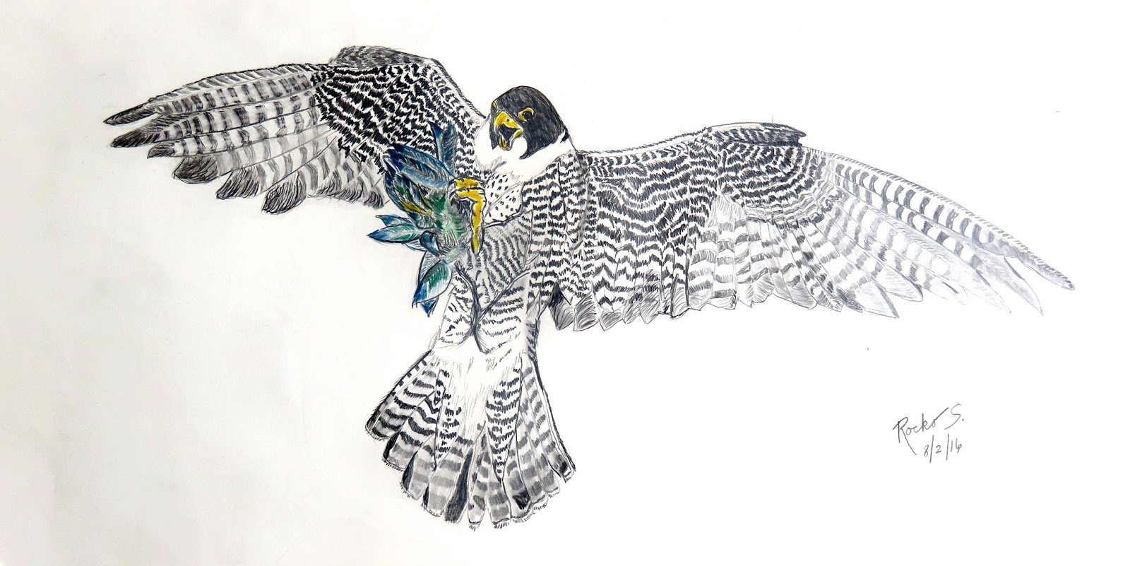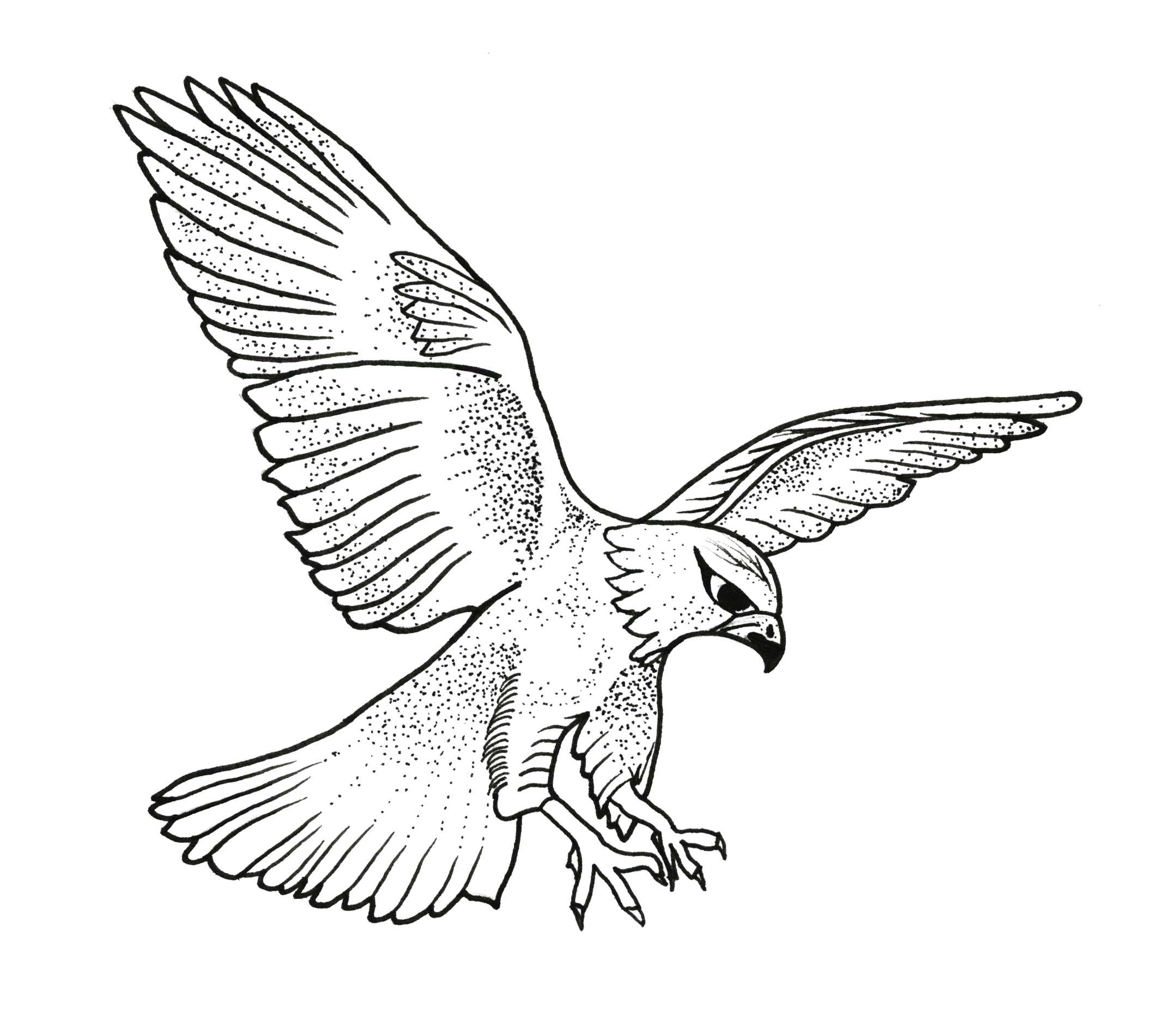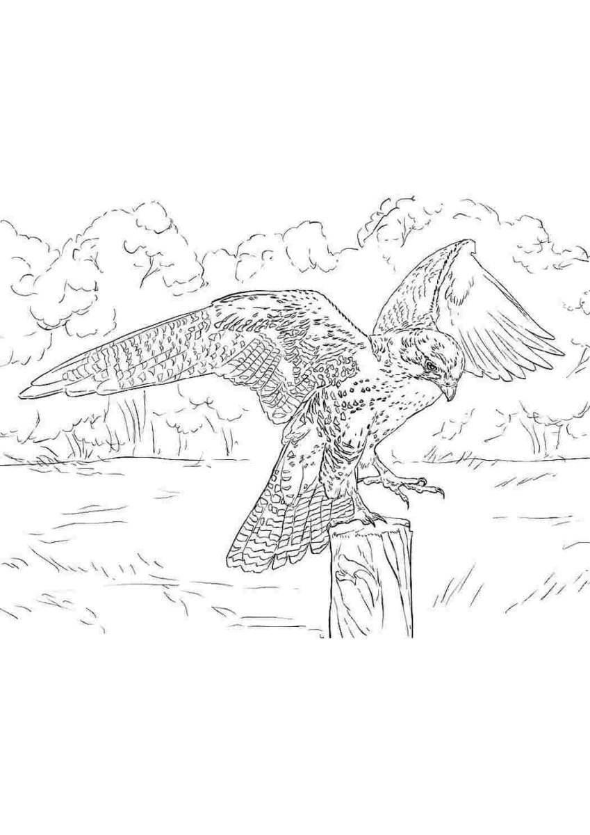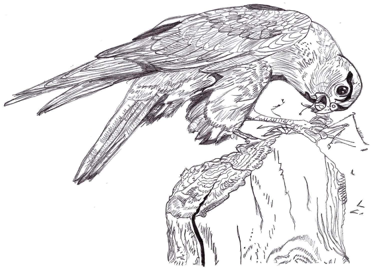 Рисунок птицы Сокола раскрашенный. Для 2 класса