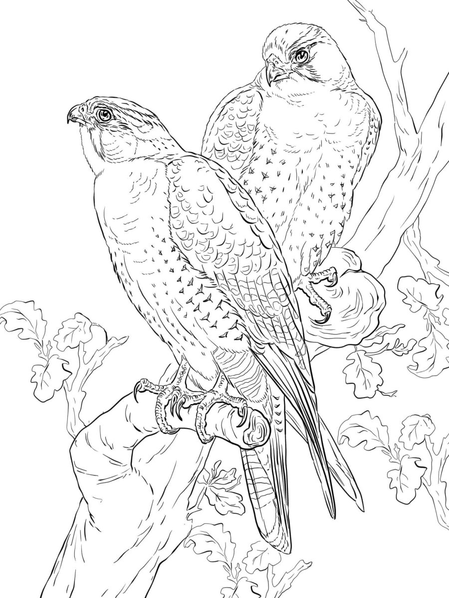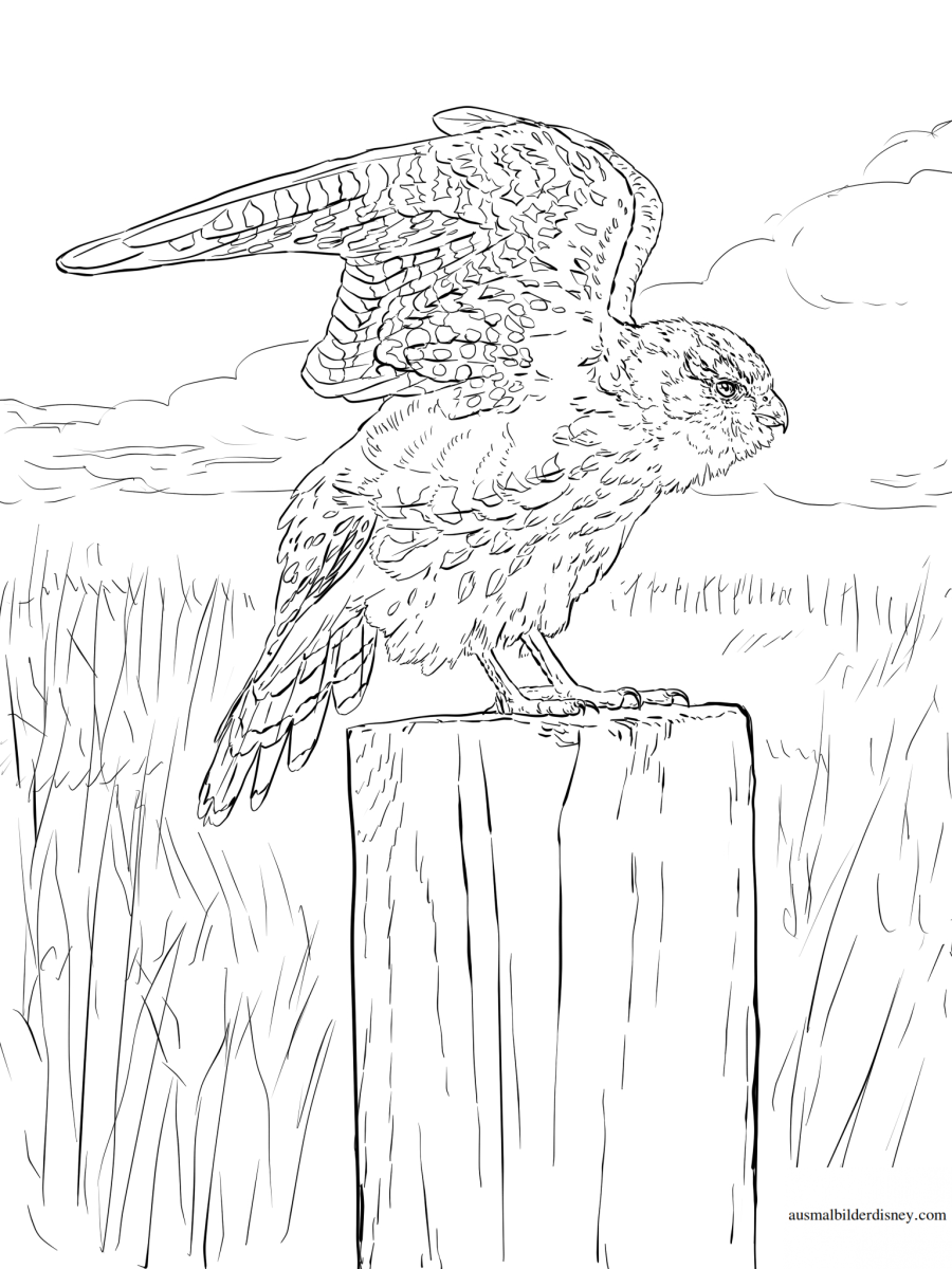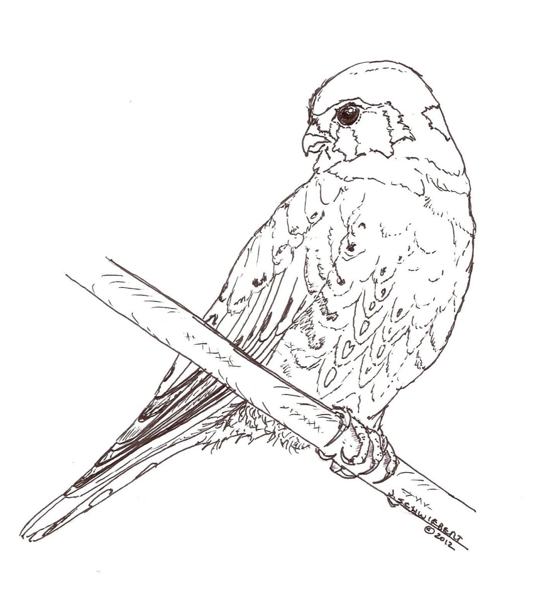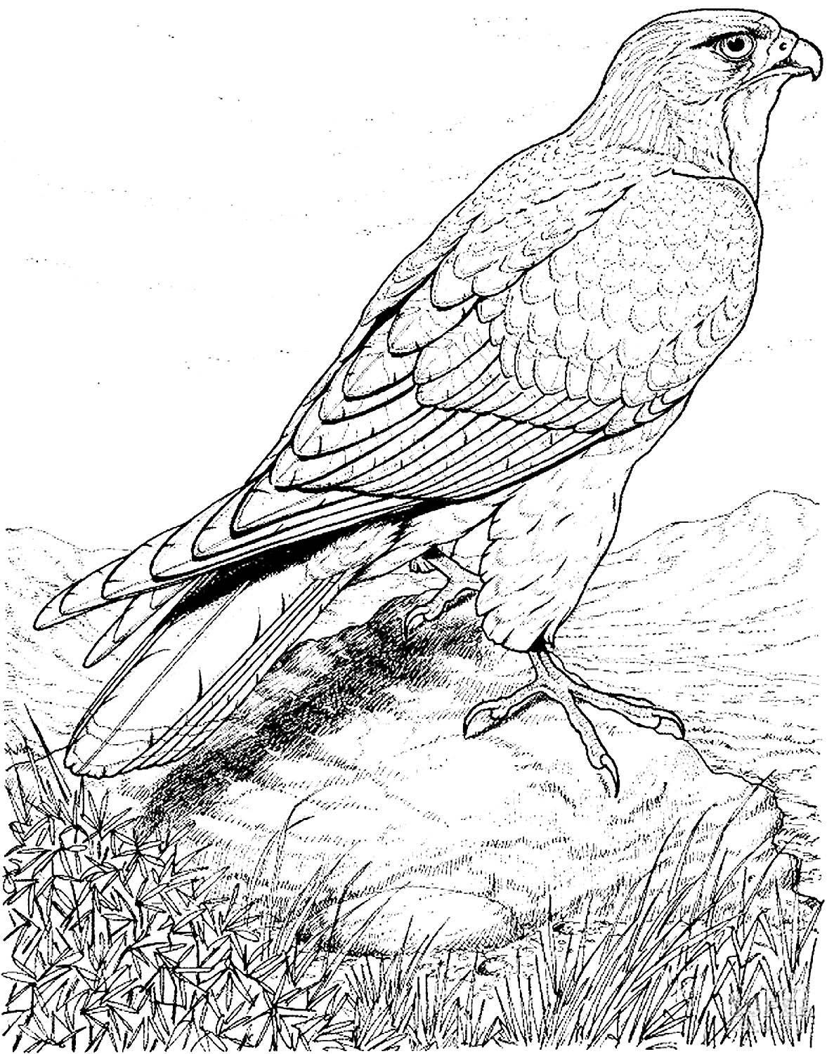 Рисунок птицы Сокола раскрашенный. Для 2 класса