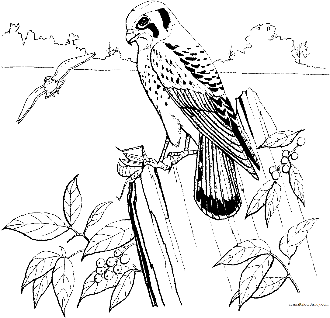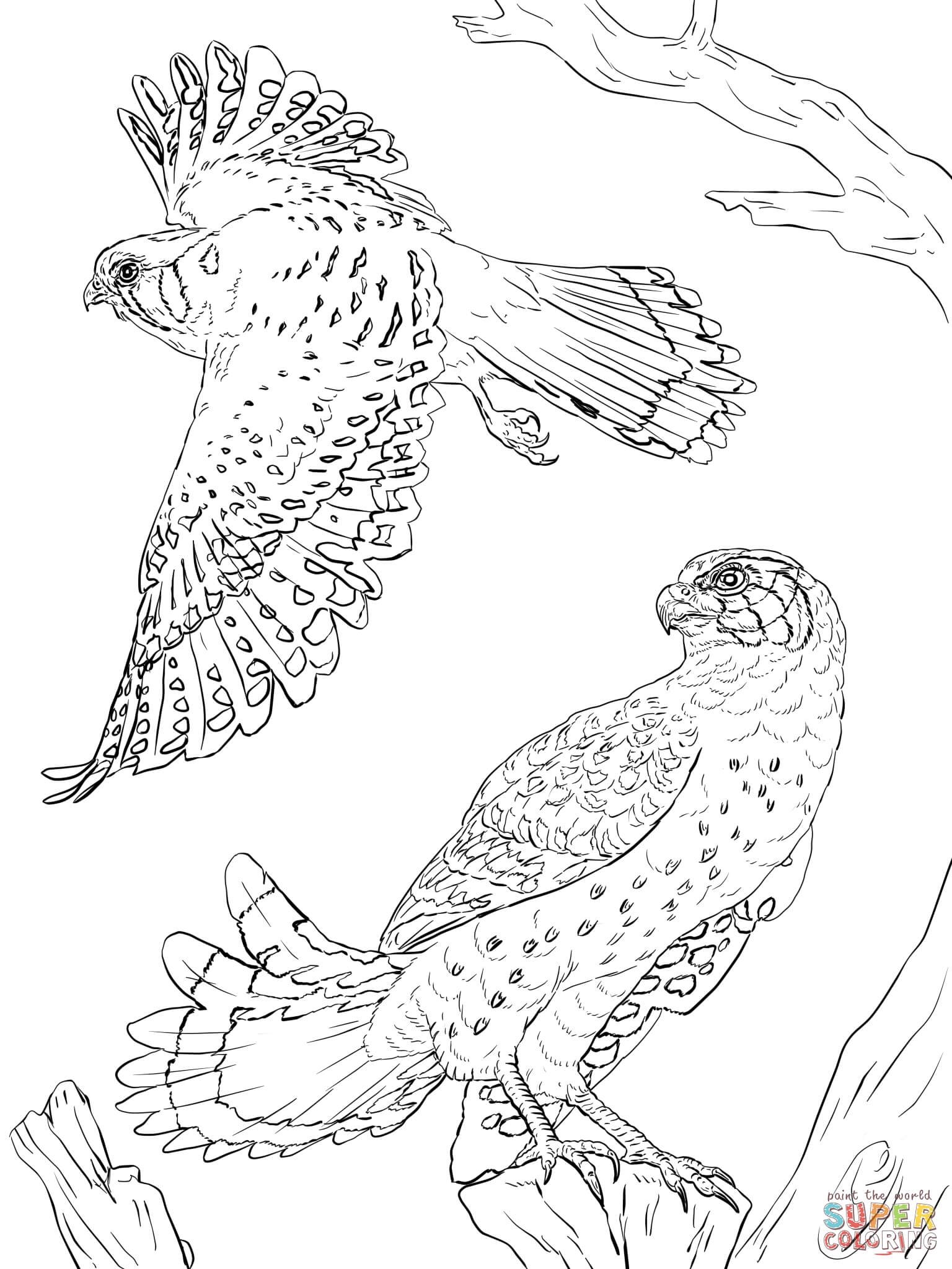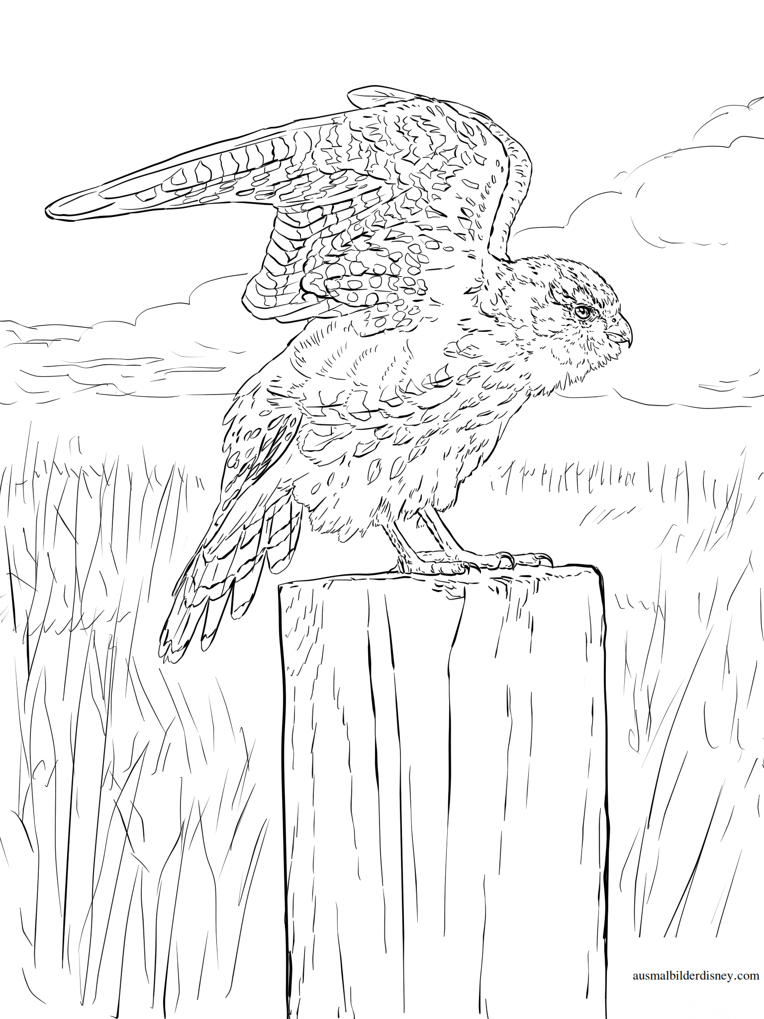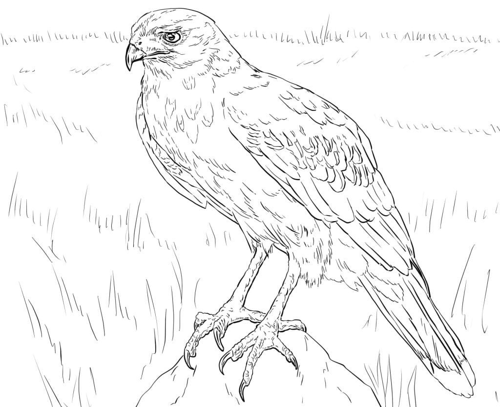 Рисунок птицы Сокола раскрашенный. Для 2 класса