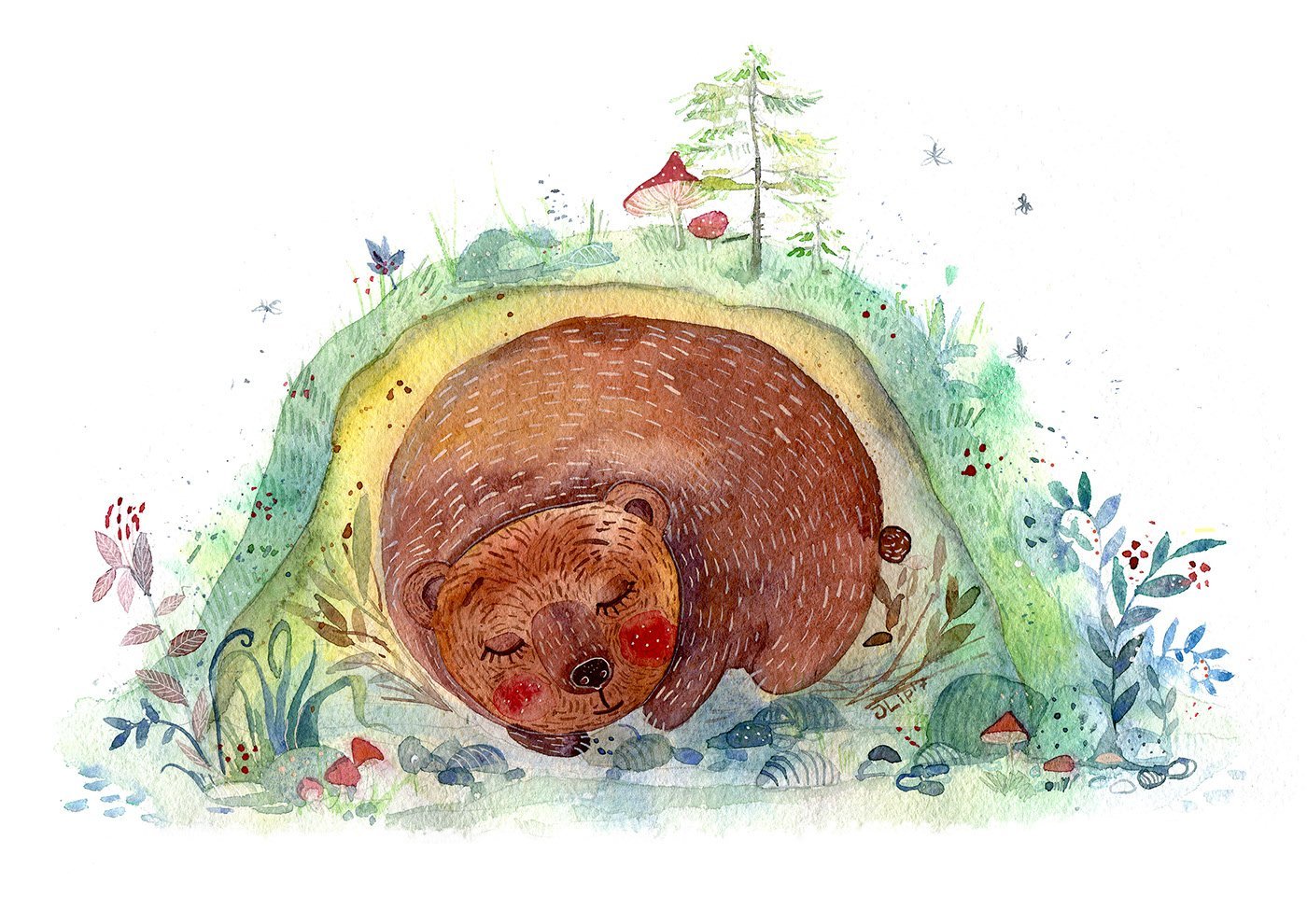 Акварельные медведь в берлоге