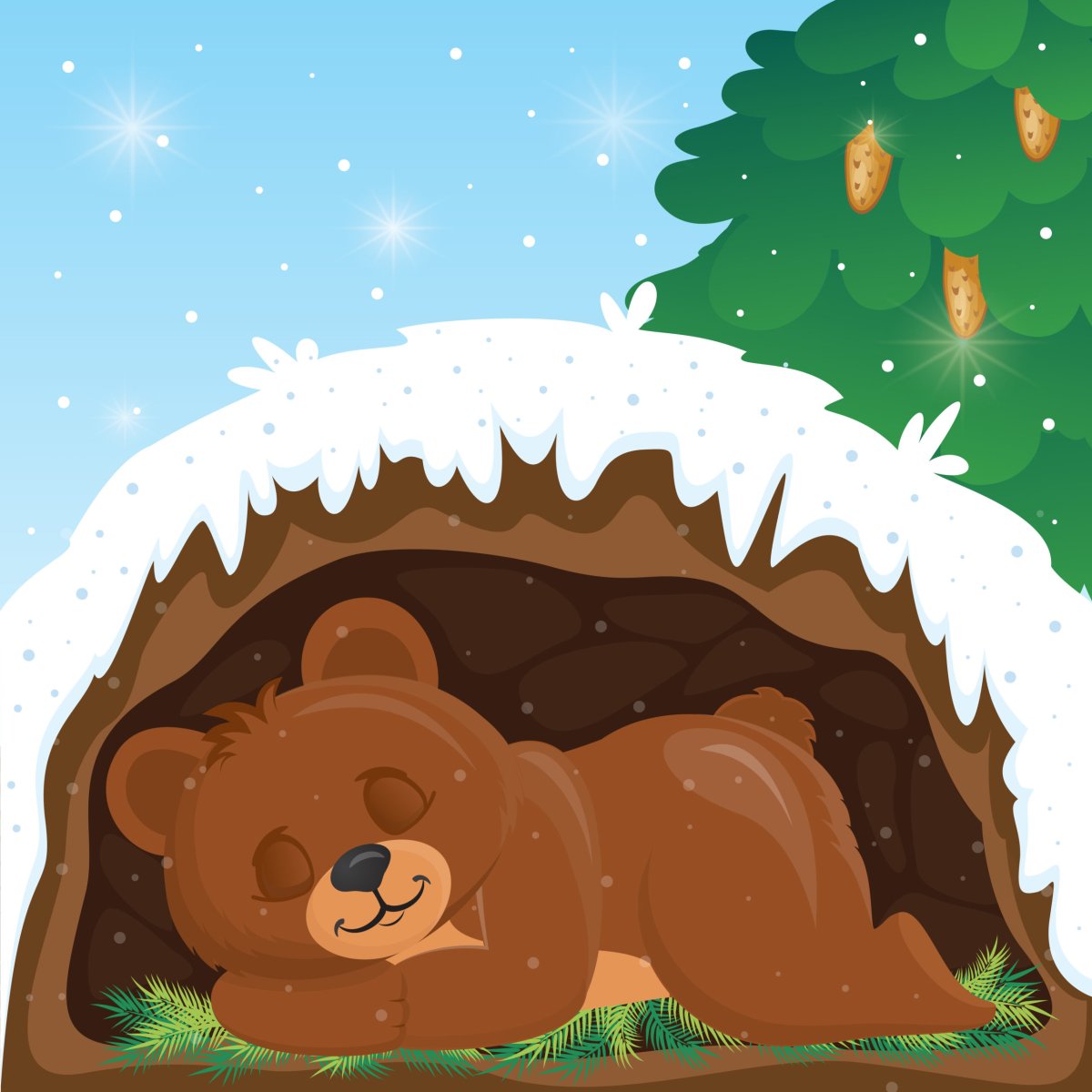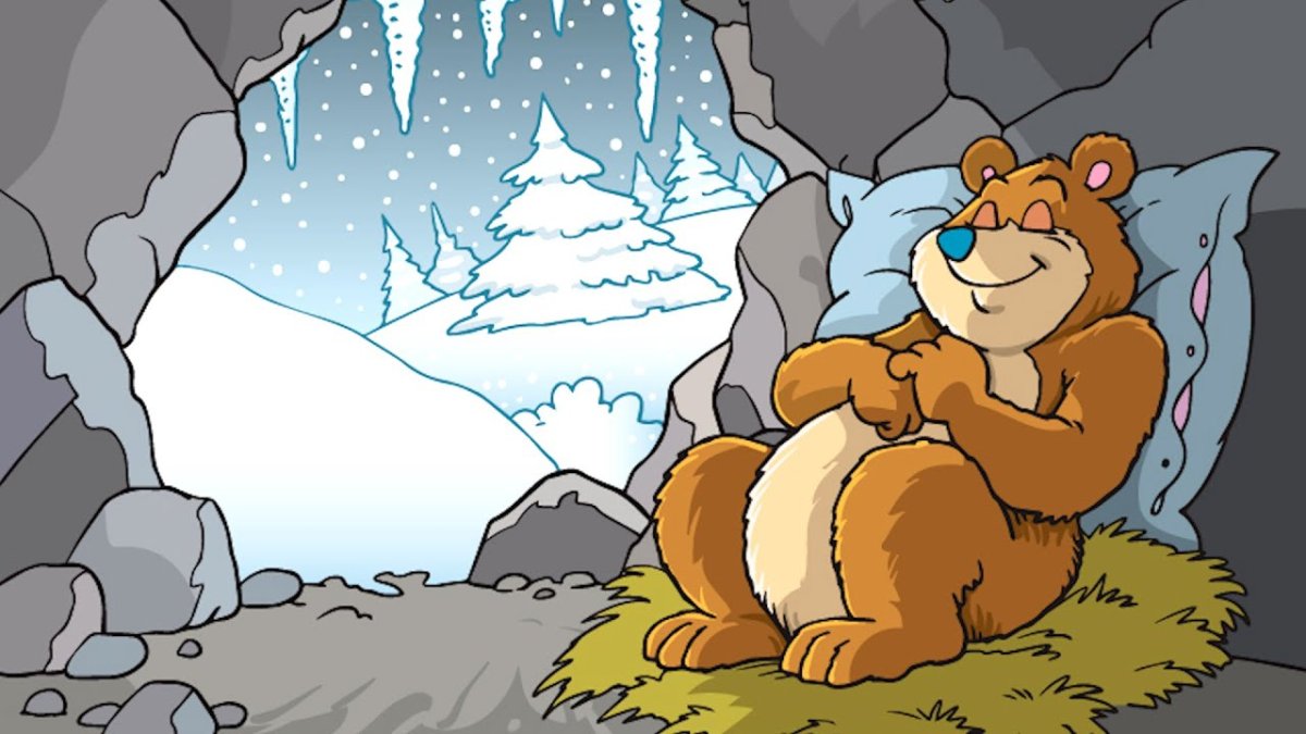 Медведь в берлоге мультяшный