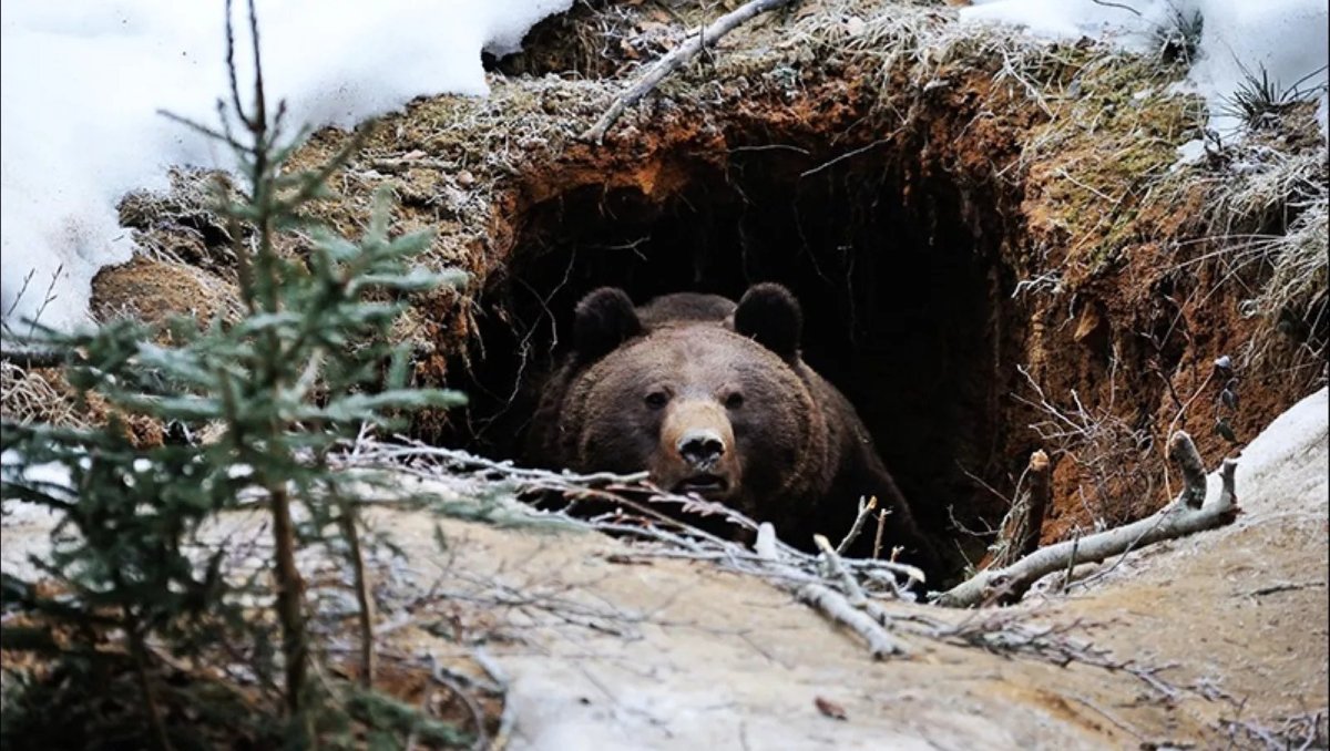 Медведь просыпается в берлоге