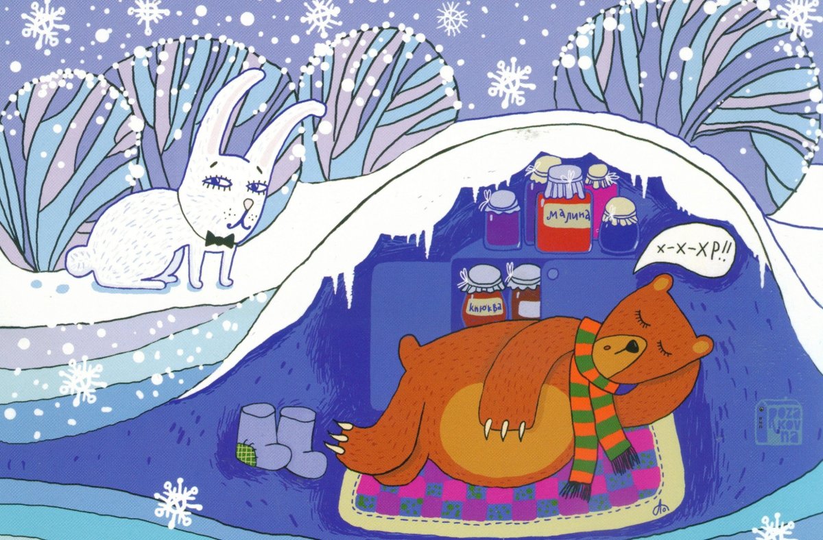 Открытка с медведем в спячке