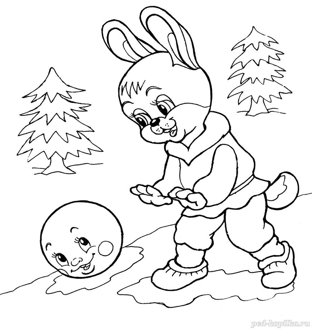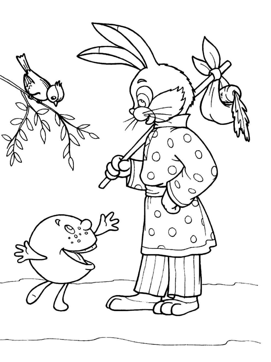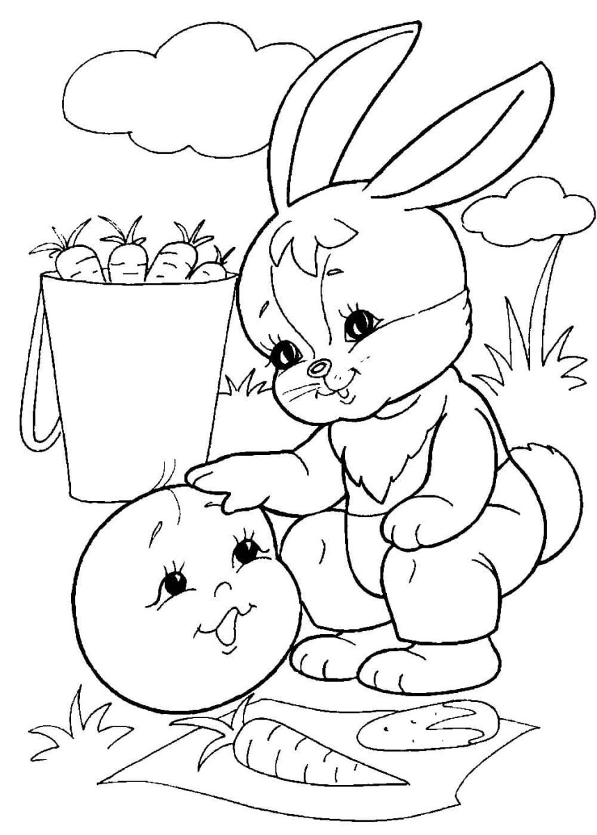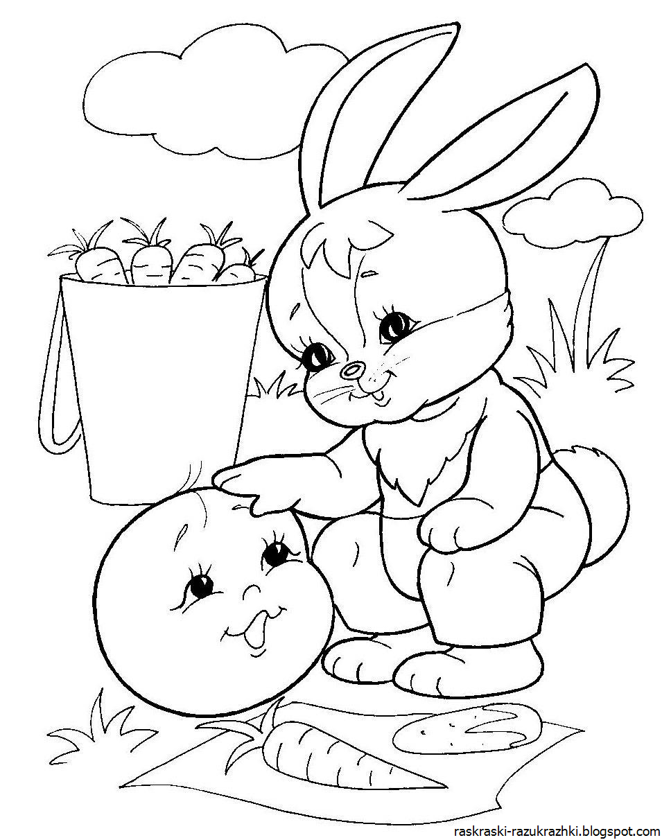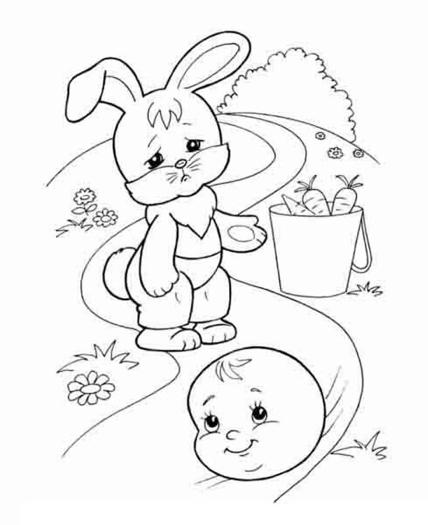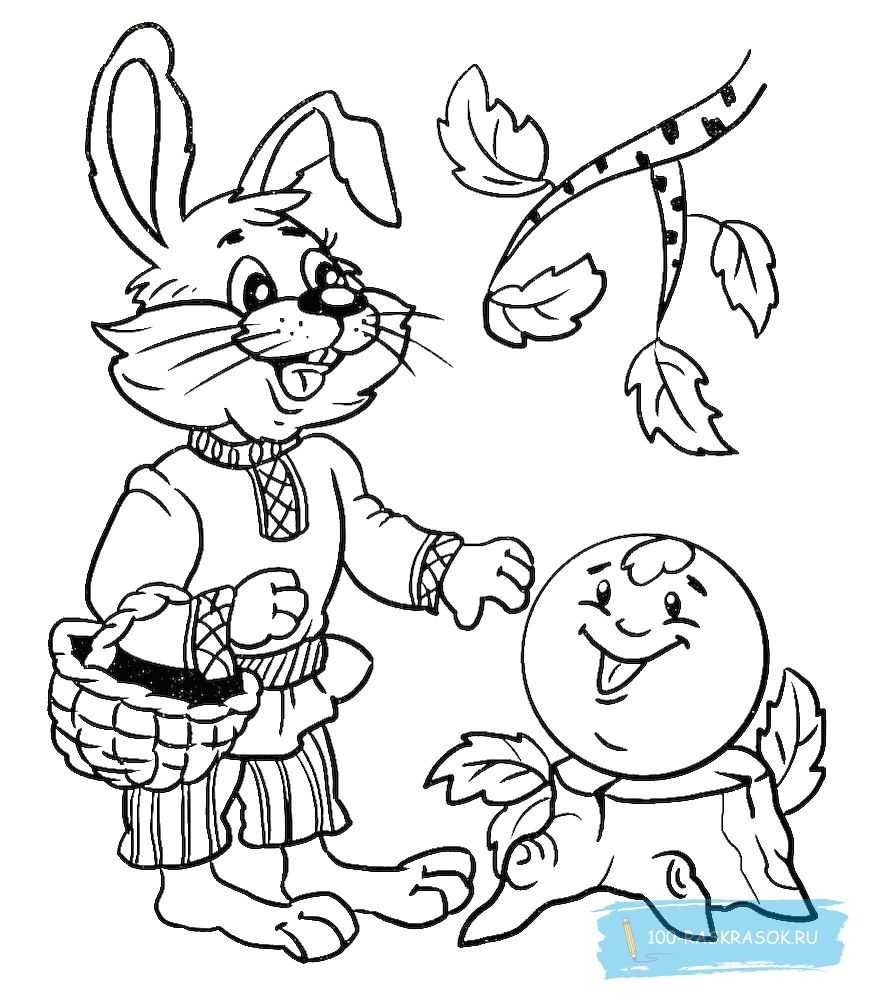 Зайчик и Колобок раскраска