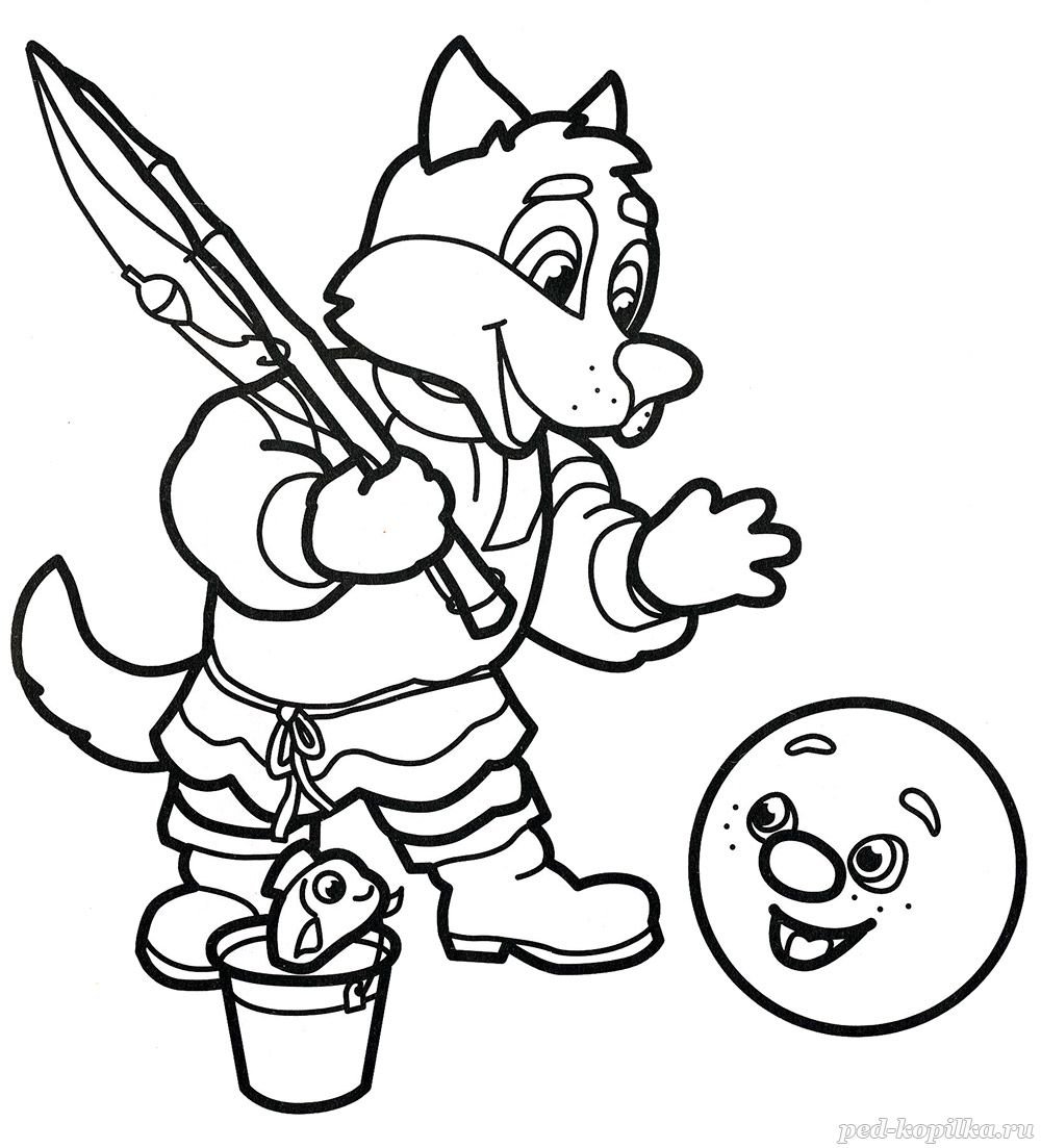 Волк из колобка раскраска