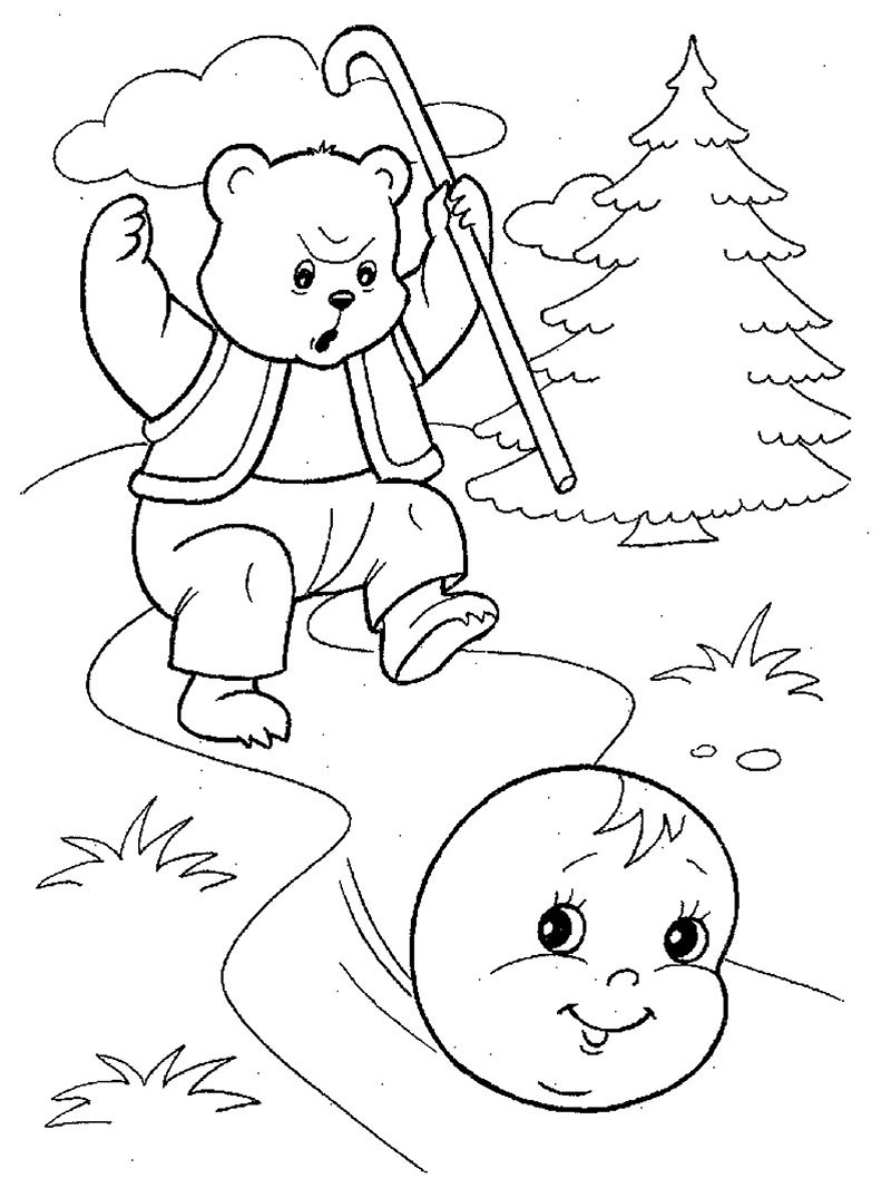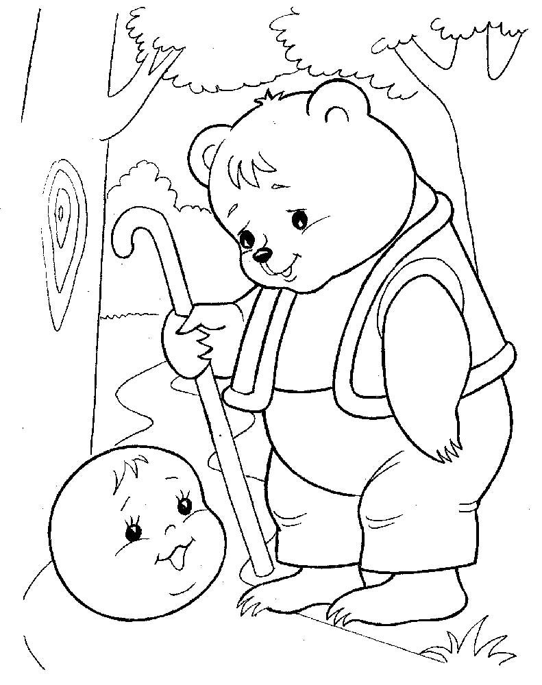 Медведь из колобка раскраска