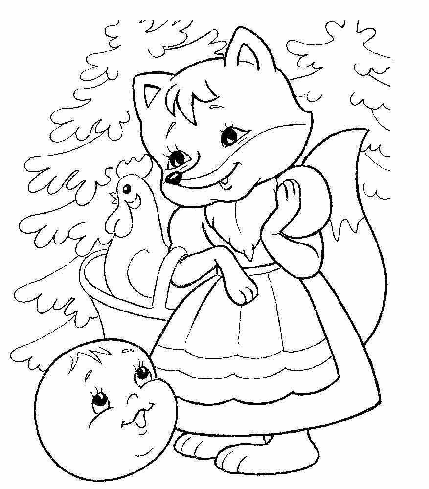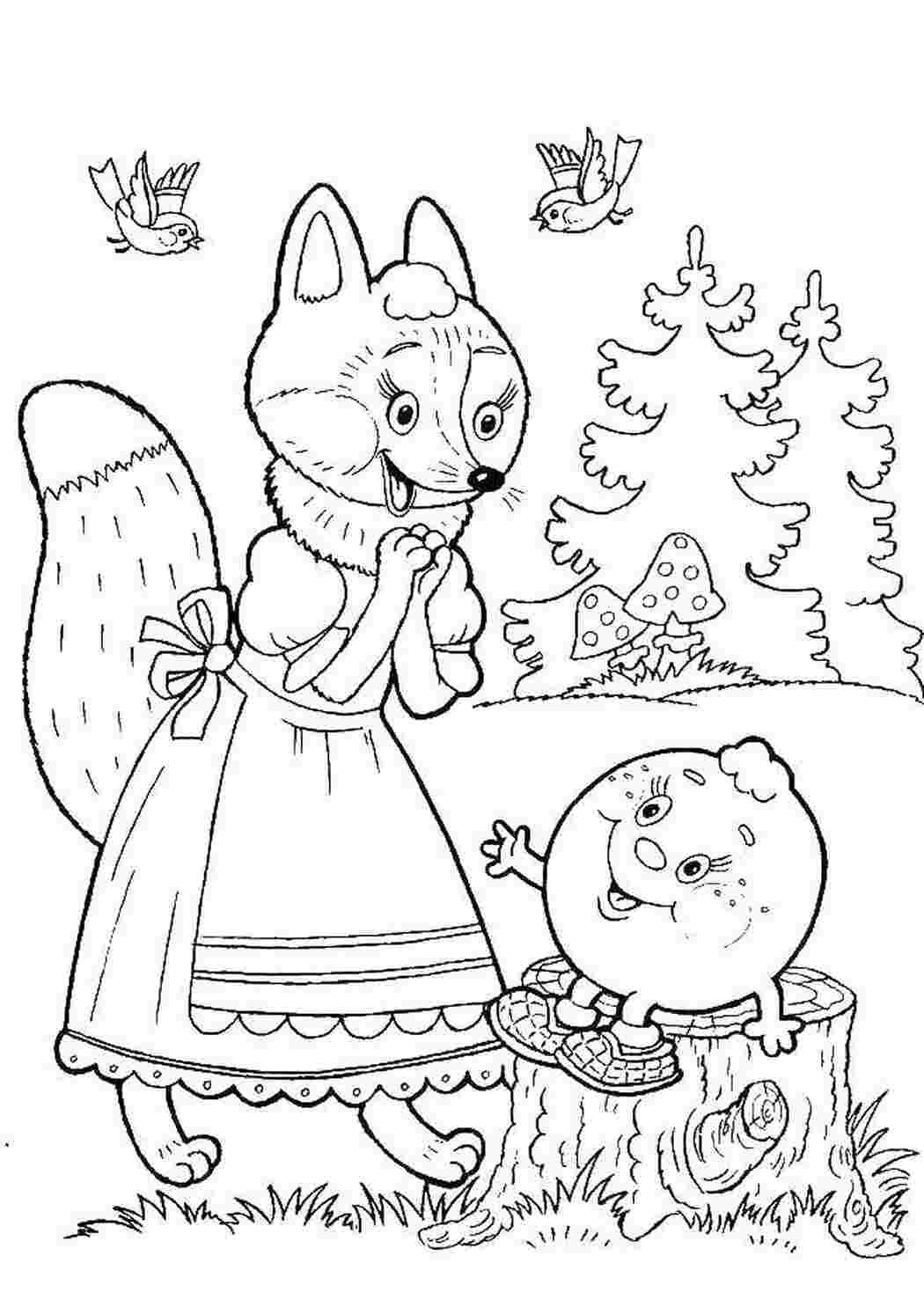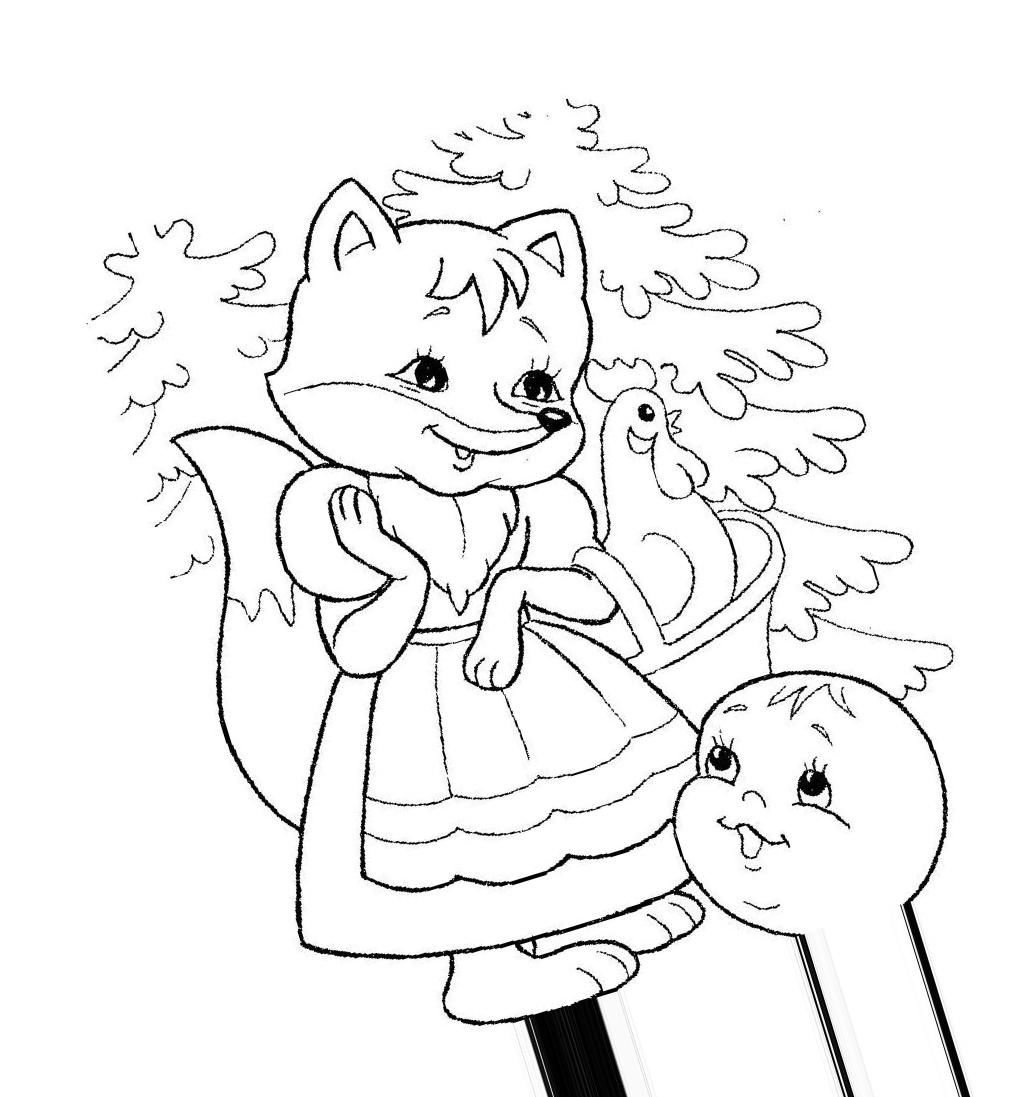 Лиса и Колобок раскраска для детей