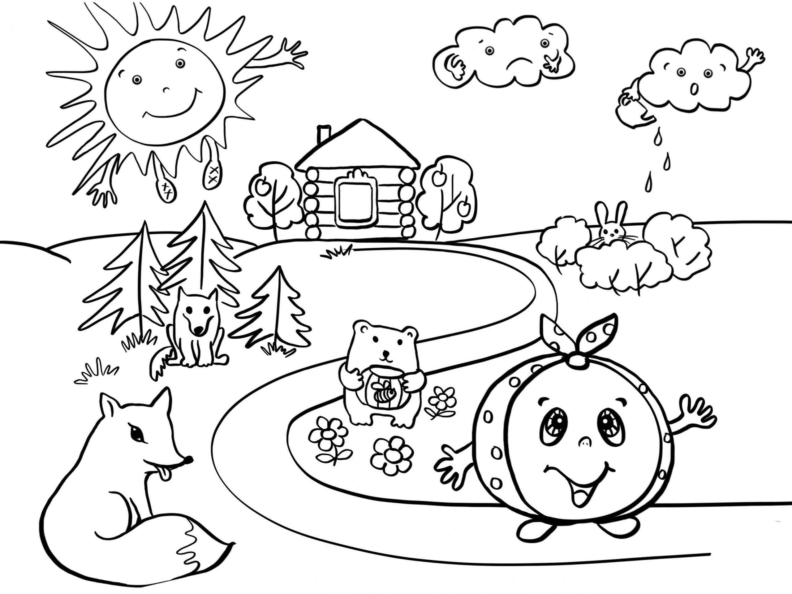 Детские раскраски к сказке Колобок