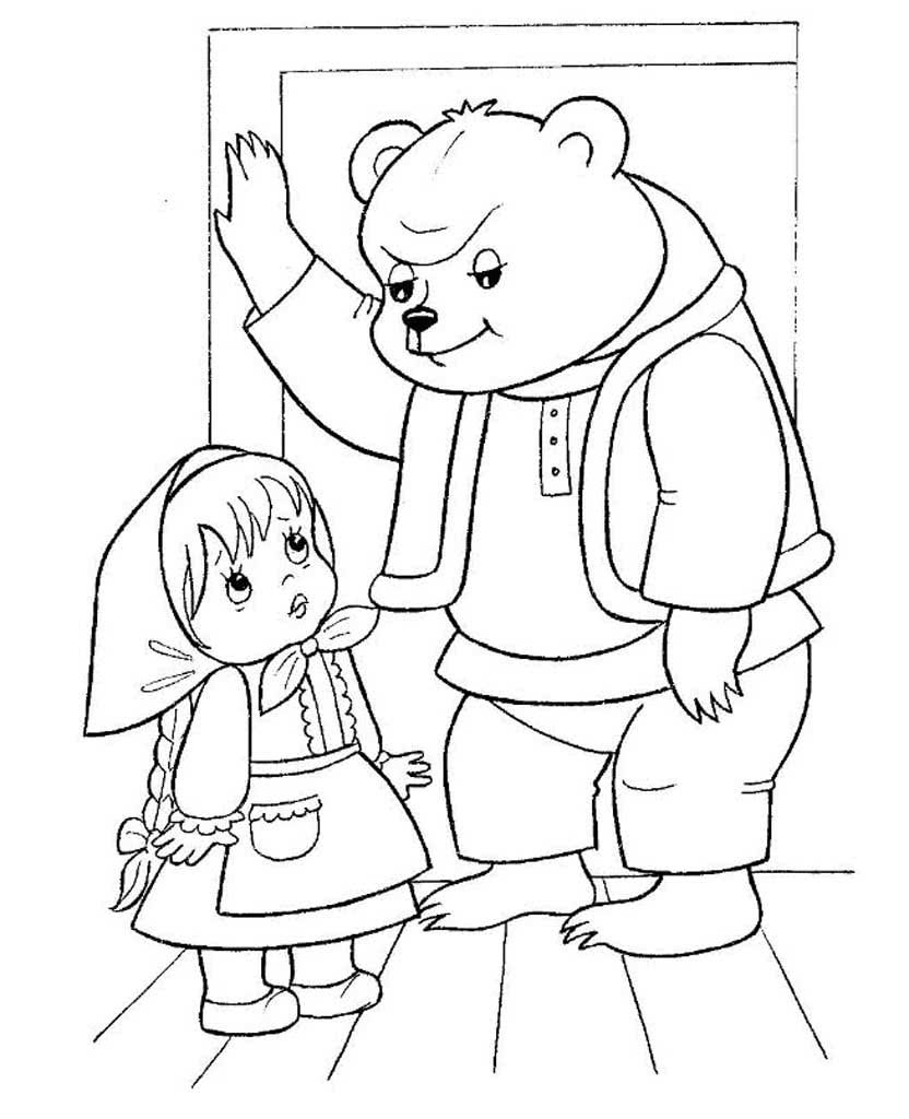 Раскраска для детей сказки сказка Маша и медведь