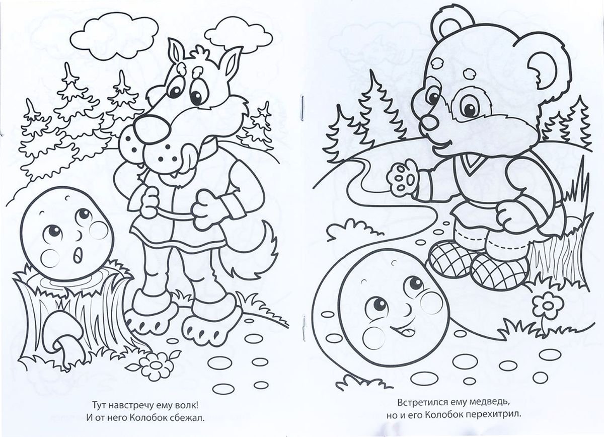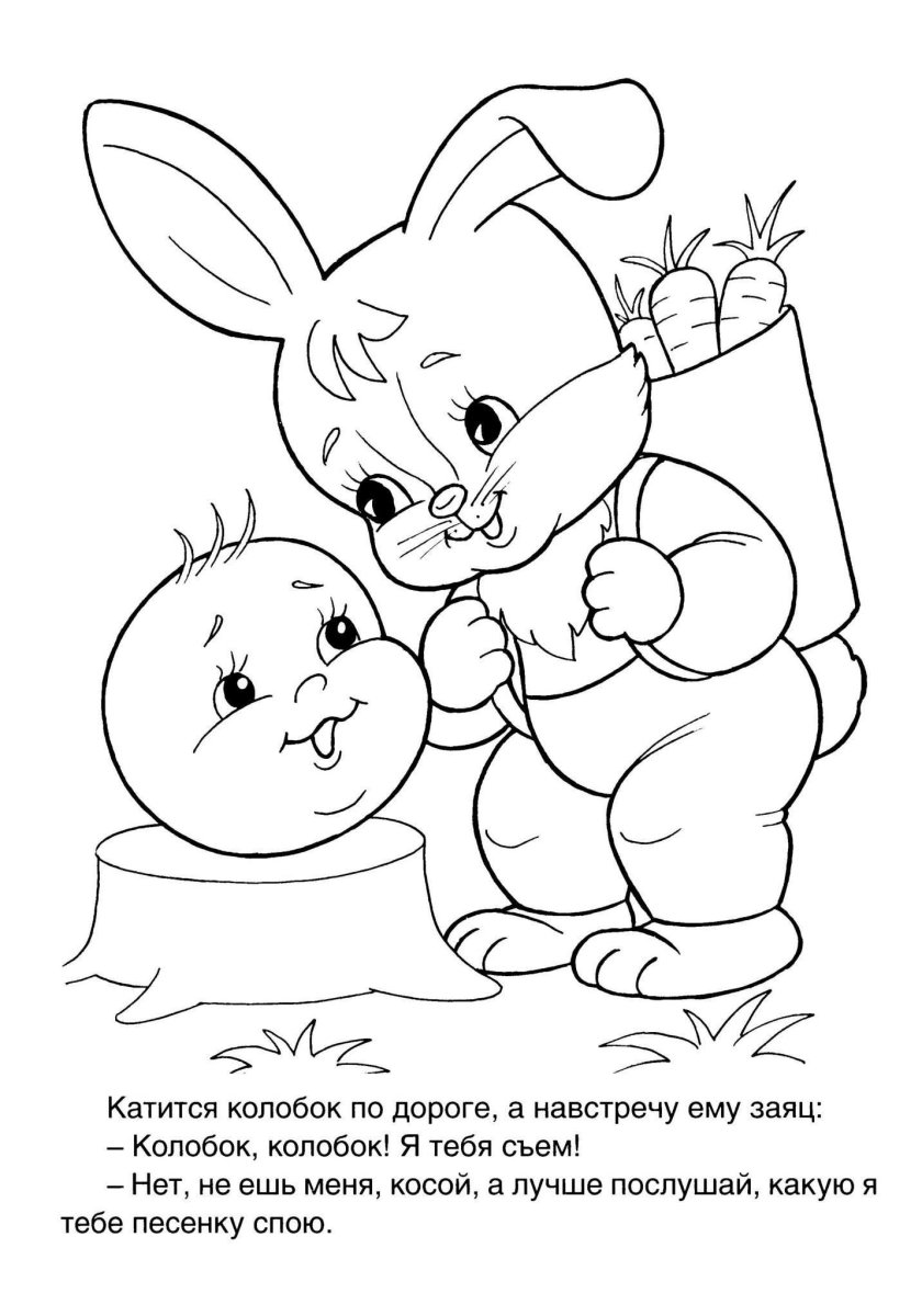 Иллюстрации к сказке Колобок раскраска для детей
