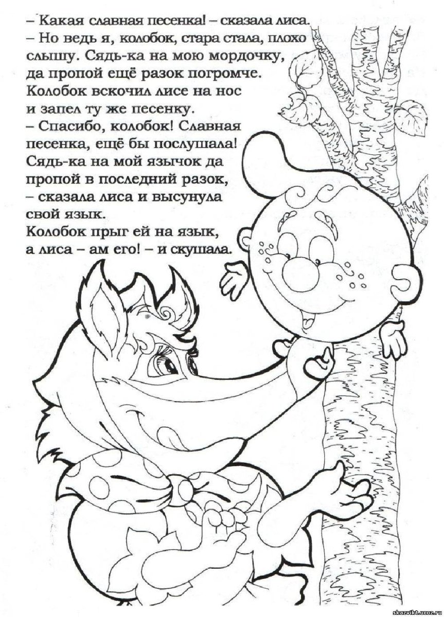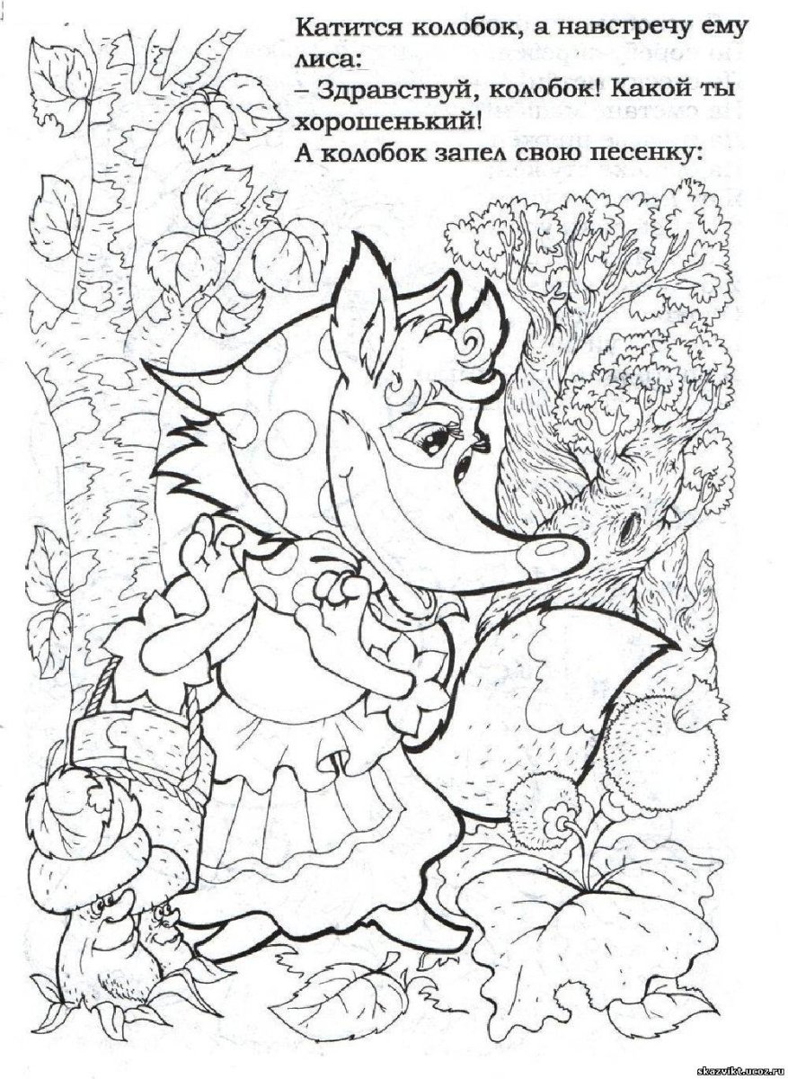 Лиса ест колобка раскраска