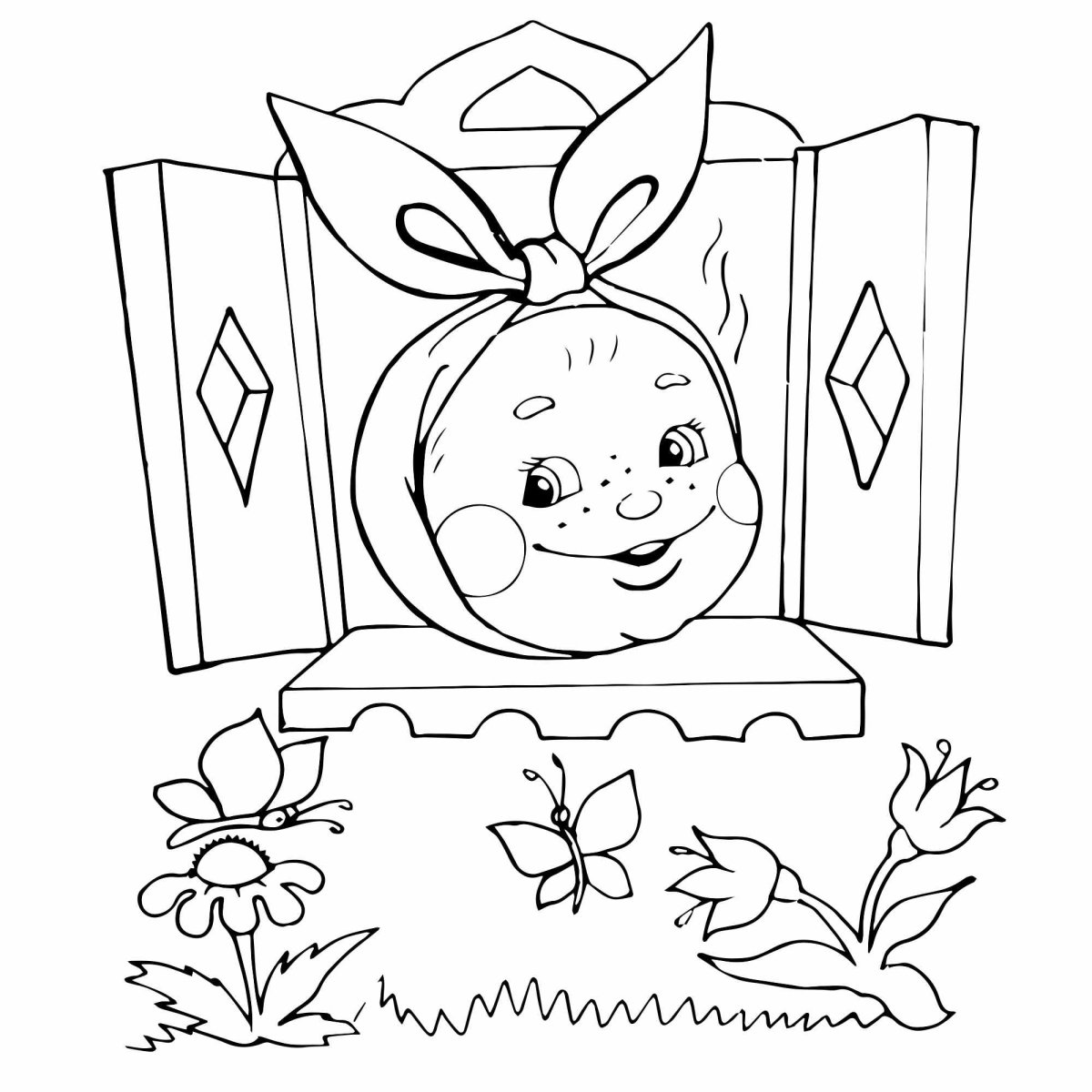 Раскраска к сказке Колобок для детей