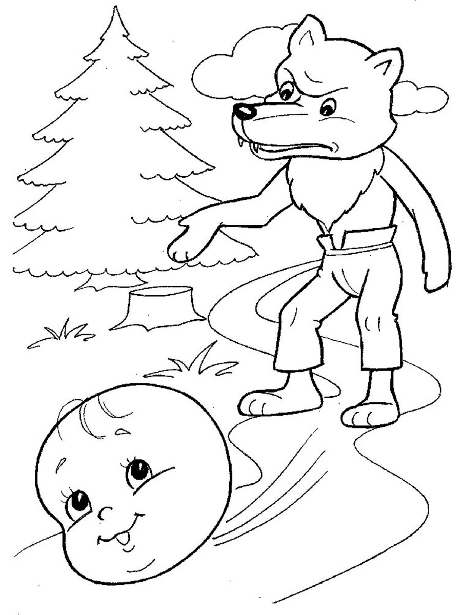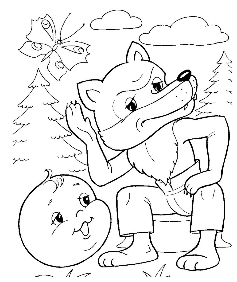 Колобок и волк раскраска