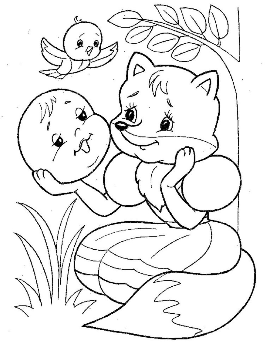 Лиса и Колобок раскраска