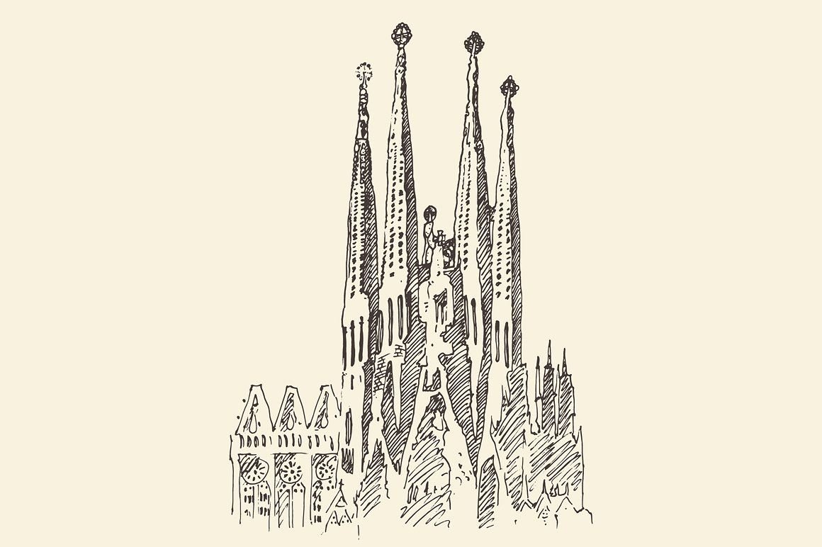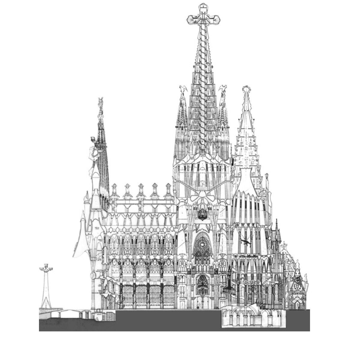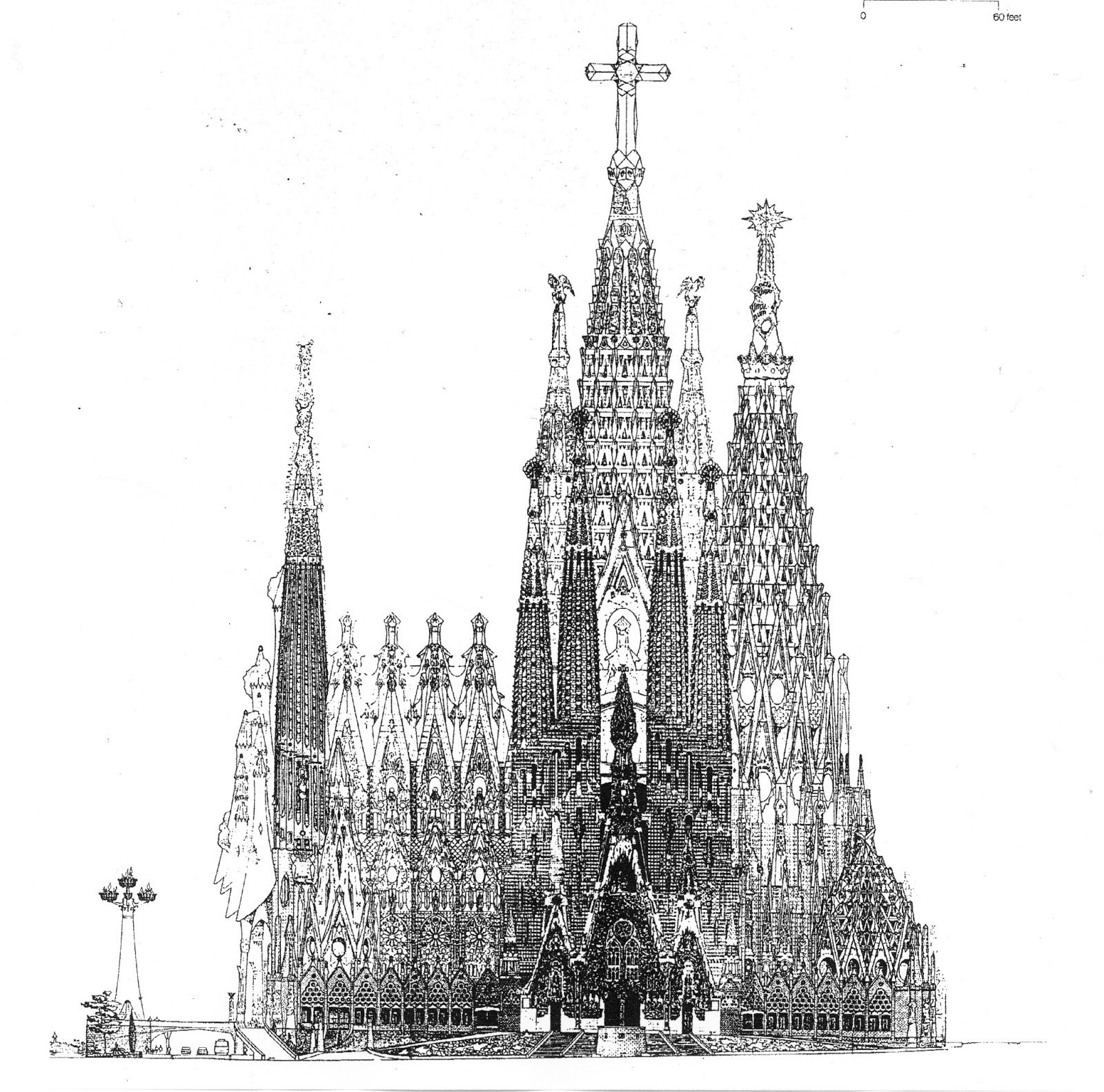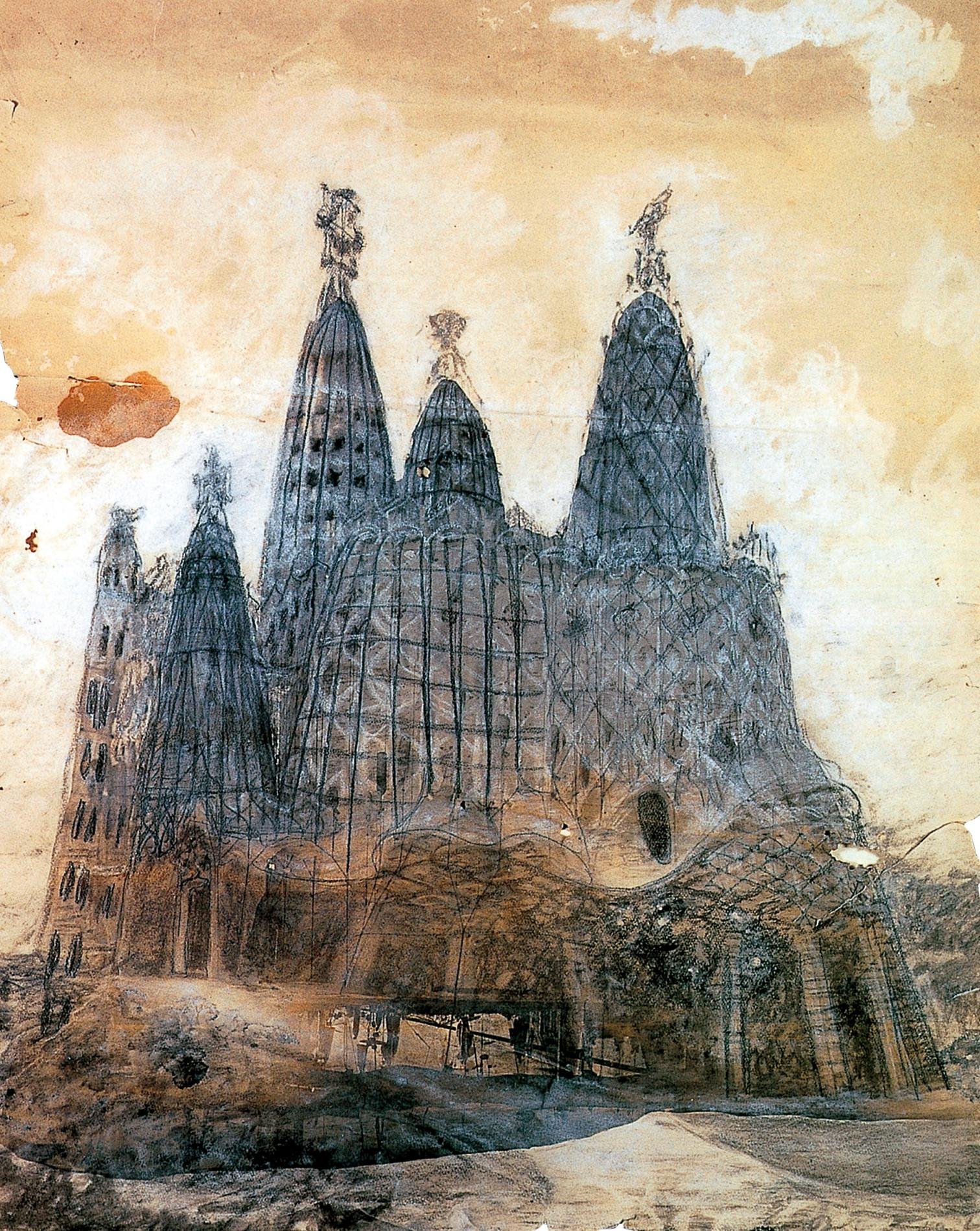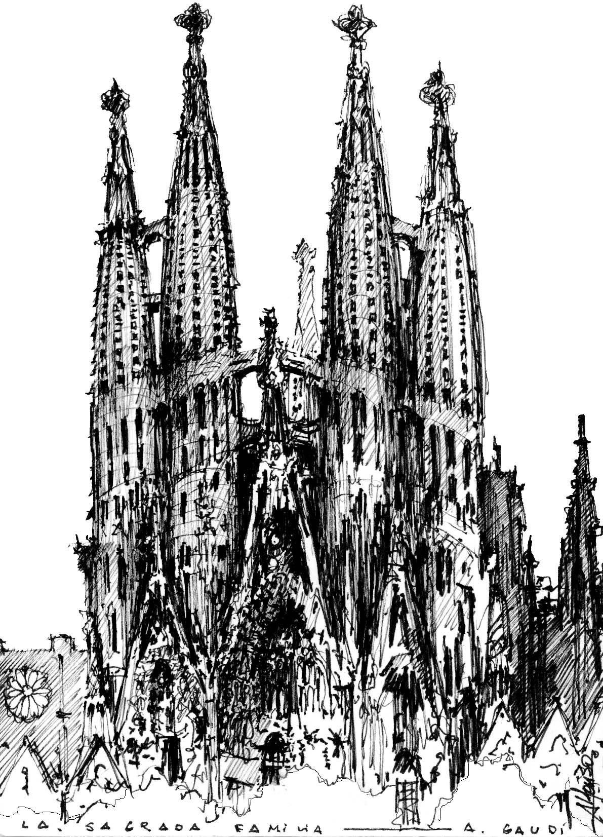 Антонио Гауди храм Святого семейства в Барселоне рисунок
