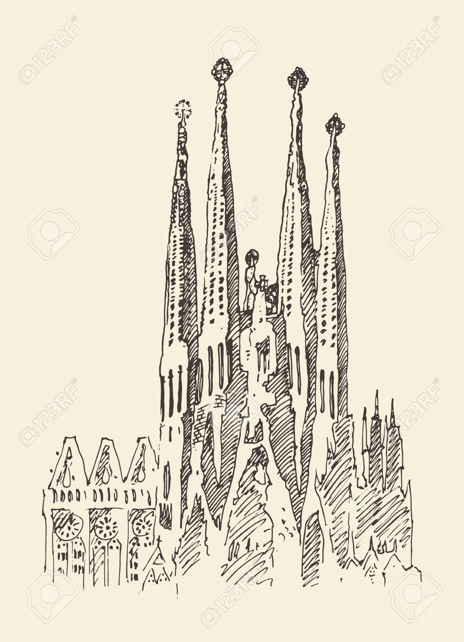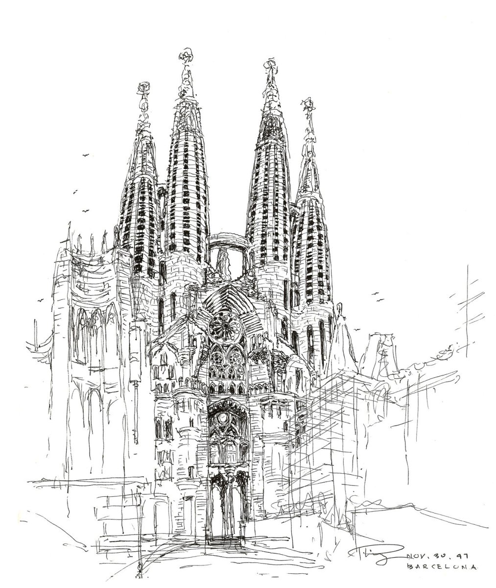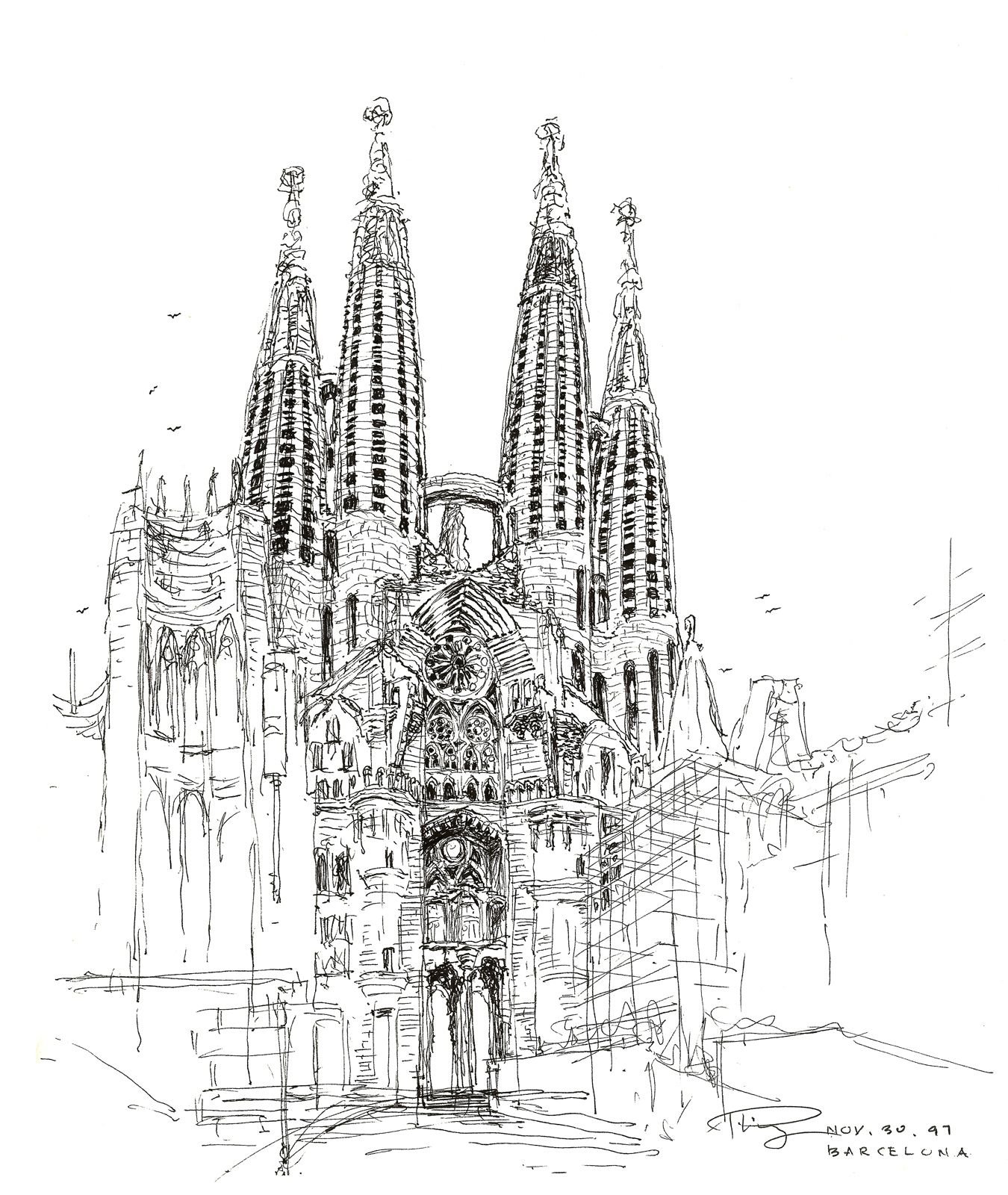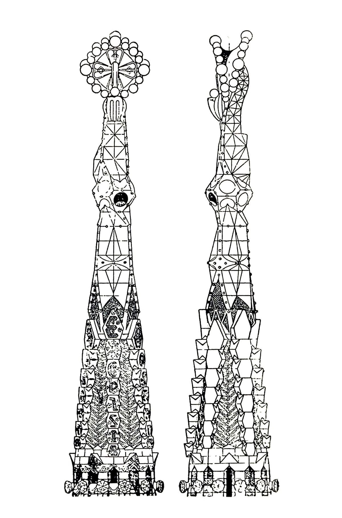 Антонио Гауди храм Святого семейства в Барселоне рисунок