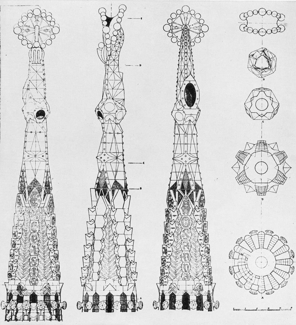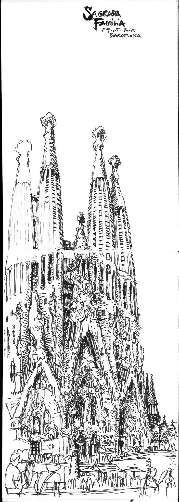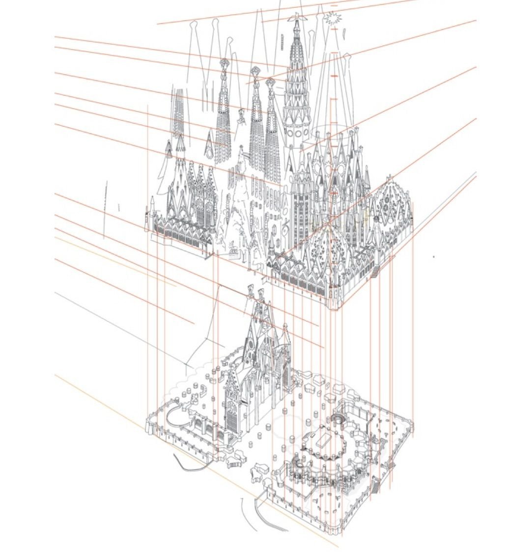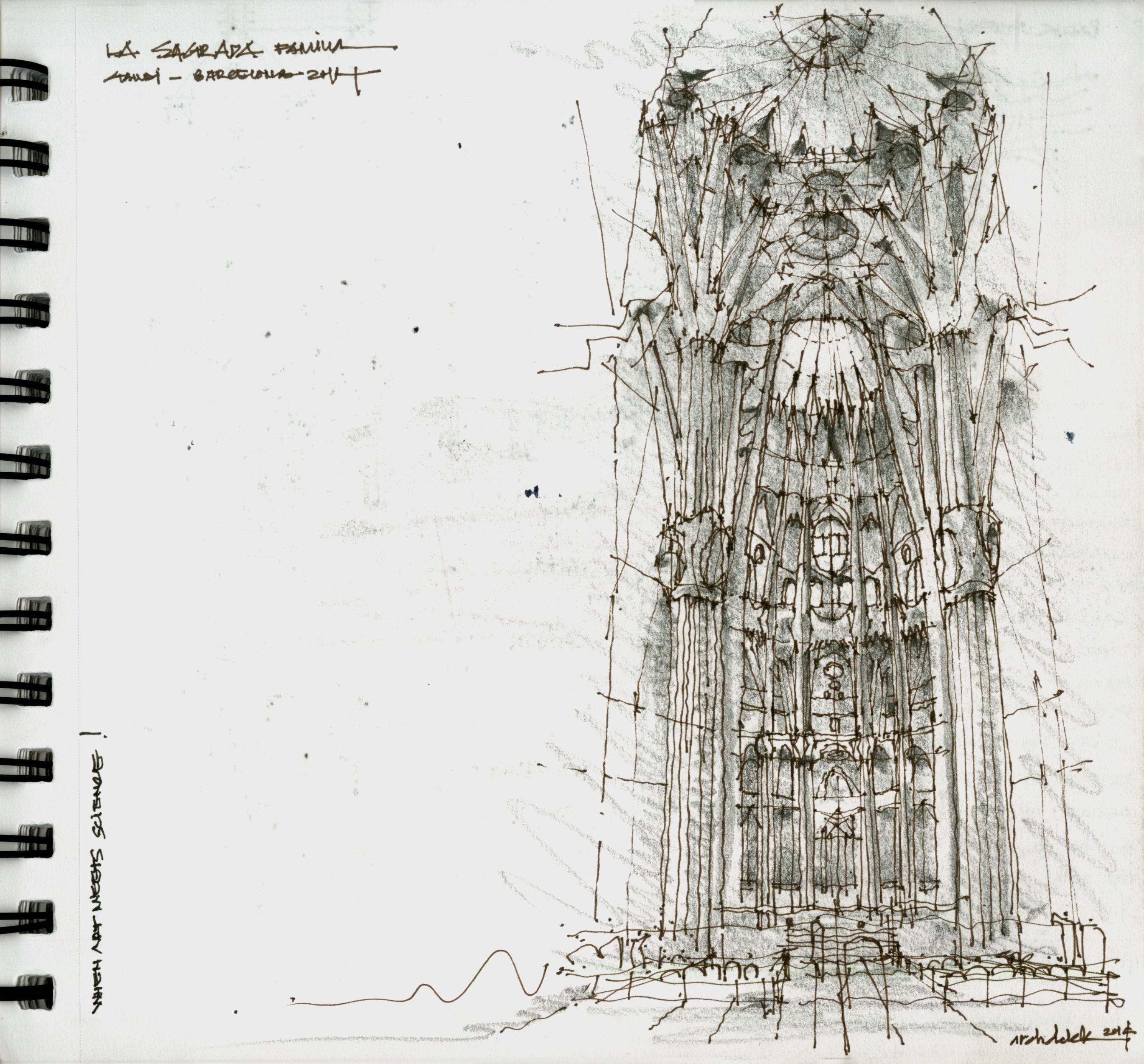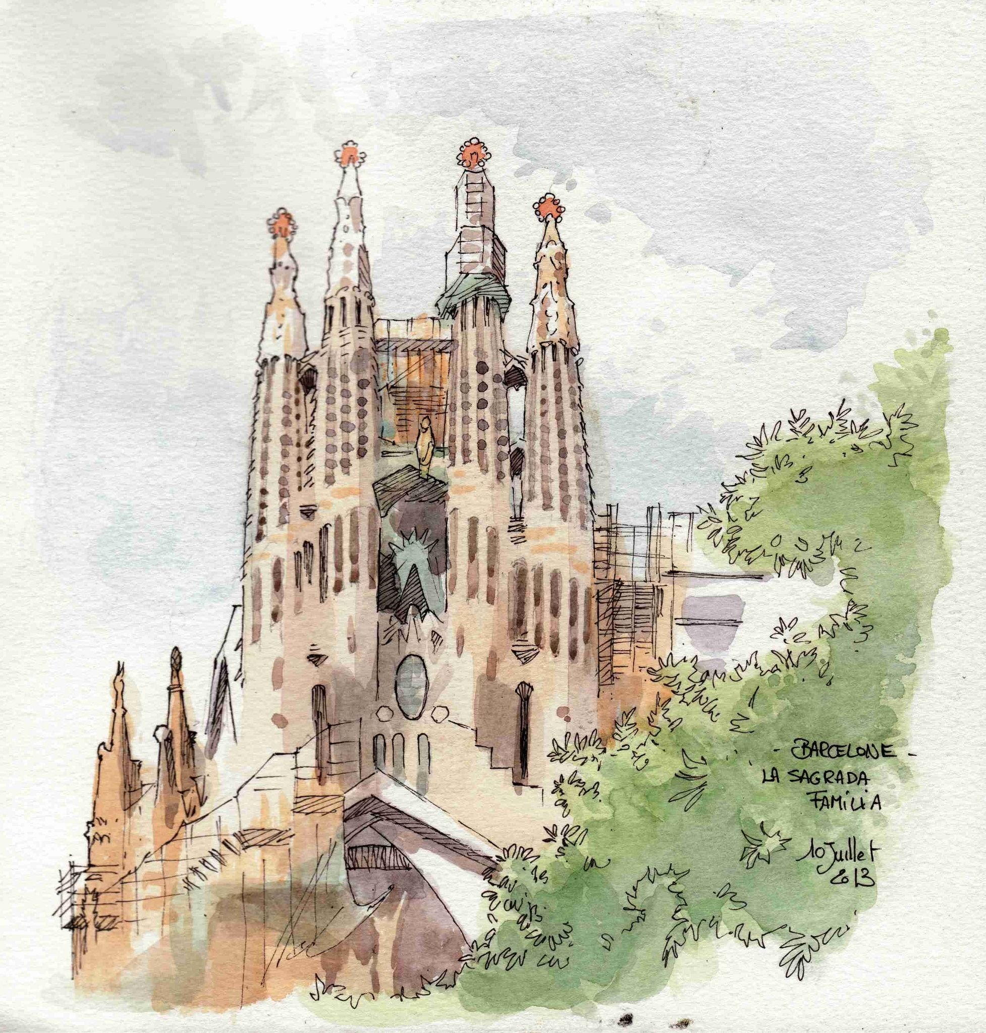 Антонио Гауди храм Святого семейства в Барселоне рисунок