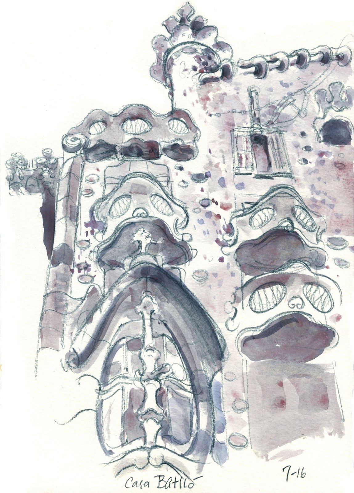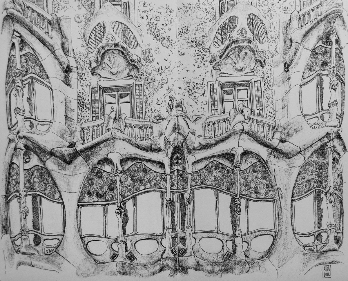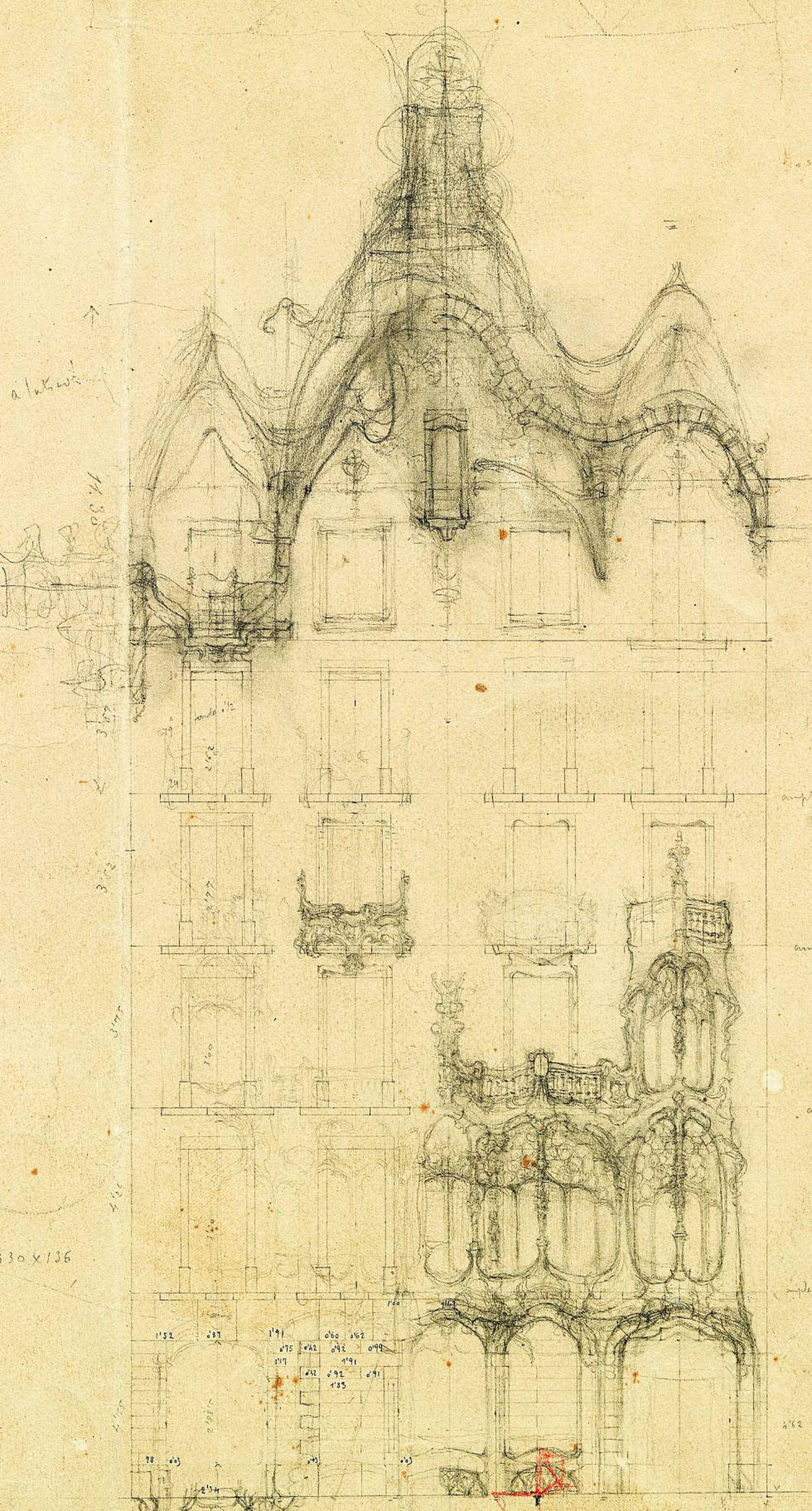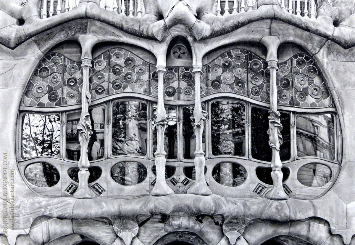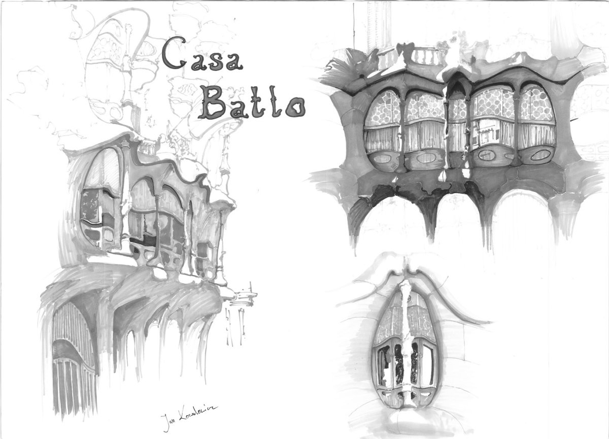 Дом Батло в Барселоне, а. Гауди.1904-1906г зарисовки